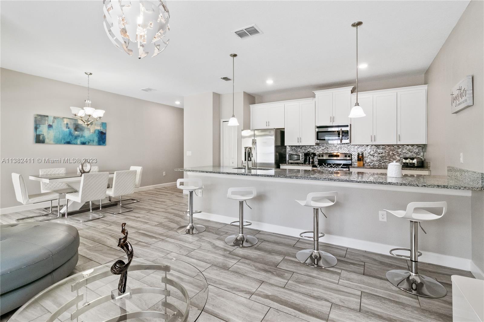 Are you looking for your next vacation home or investment property located just 20 minutes away from Disney World, Universal Studios, and Seaworld? Well, you’ve found it! This spectacular 4 bed/3 bath townhome is being sold **FULLY FURNISHED**, has a private pool, allows for SHORT and LONG-TERM RENTALS, and offers state-of-the-art amenities and security that you will not find elsewhere. This community has an Oasis Club which boasts 3 pools, a tiki bar, air-conditioned cabanas, a jacuzzi, a restaurant, a gym, a playroom, a movie theater that seats 26, and an office center. Champions Gate is a secure community where only residents and registered guests will enter via the 24-hr man-guarded entrance. Make this your home away from home today!