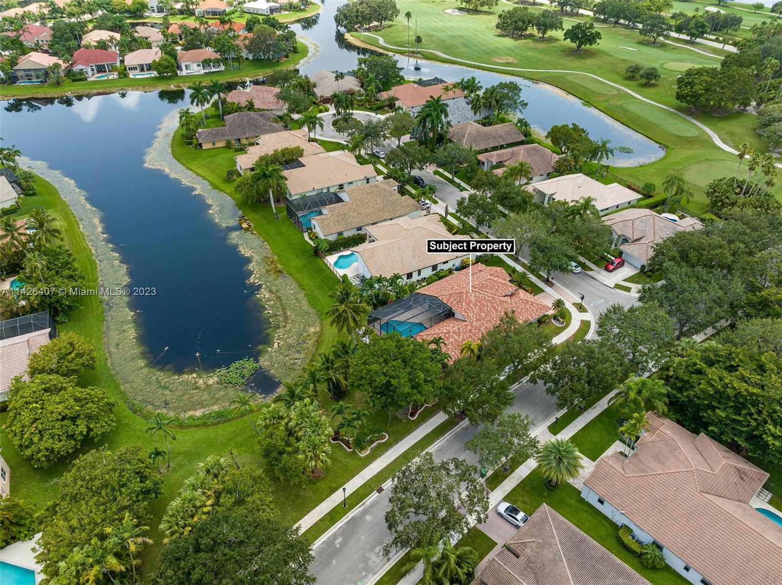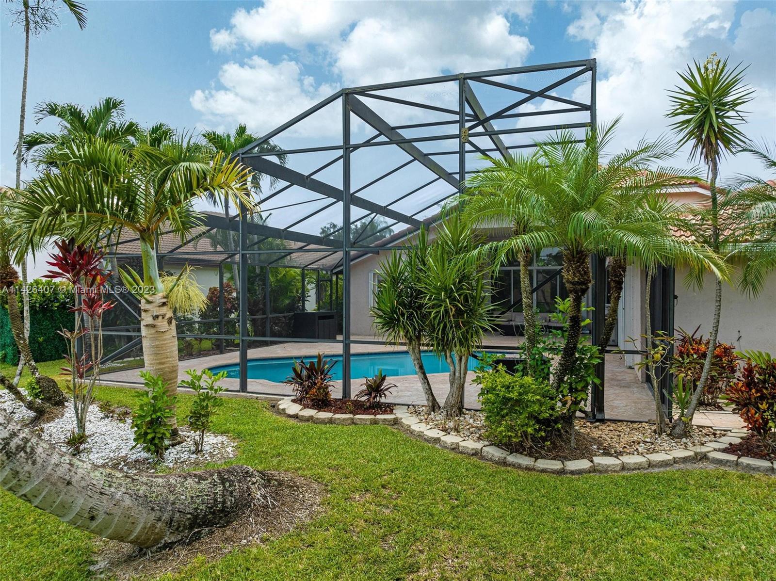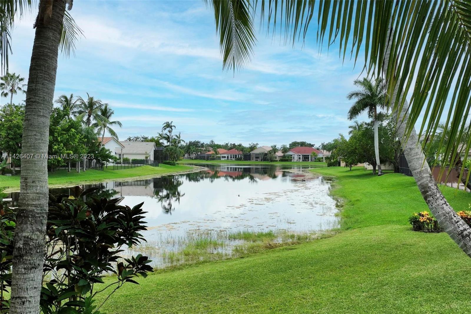 Discover your own private paradise in Weston Hills! This exquisite 5-bedroom, 2.5-bath home sits on an over 1/4 corner lot, providing privacy and a calming atmosphere. With the perfect blend of functionality with its inviting split floor plan and airy open kitchen Step outside to a beautifully landscaped front and backyard, complete with a kids’ playground that comes with the house, offering endless fun for your little ones. Unwind by the screened pool and the breathtaking lake views, and as a bonus, a stunning golf view from your haven. Safety is assured with accordion shutters, security camera system in place and the bus stop to top-notch schools just a minute’s walk away makes this home an absolute dream for families. Don’t miss the chance to call this remarkable oasis yours!