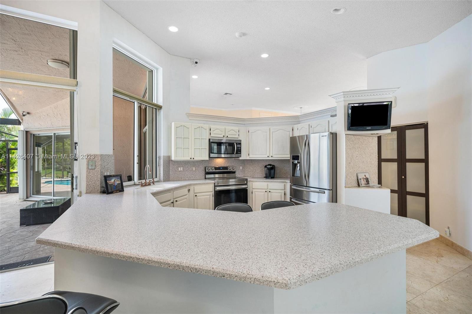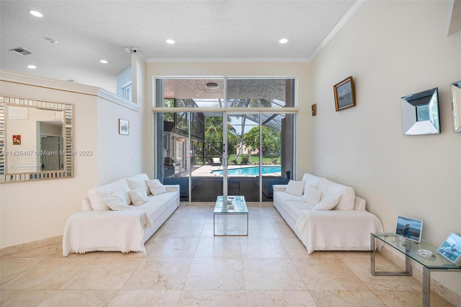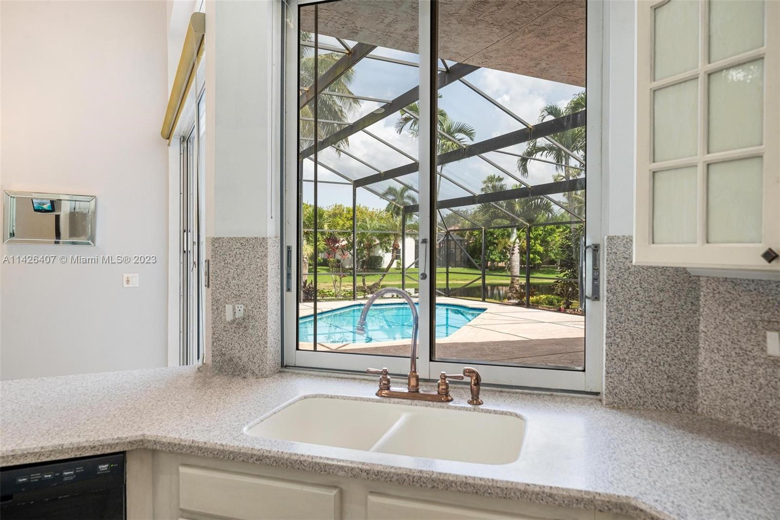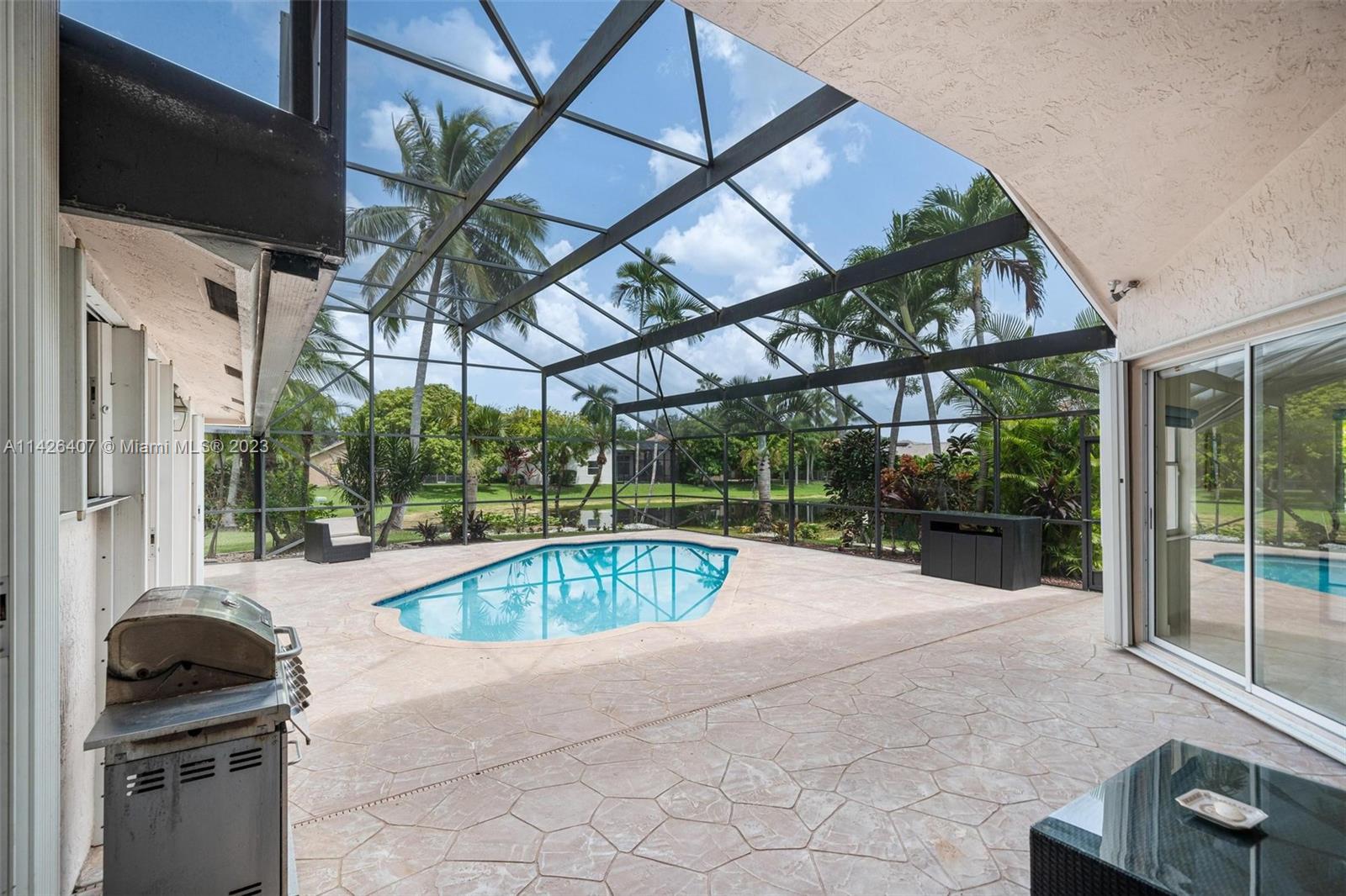 Discover your own private paradise in Weston Hills! This exquisite 5-bedroom, 2.5-bath home sits on an over 1/4 corner lot, providing privacy and a calming atmosphere. With the perfect blend of functionality with its inviting split floor plan and airy open kitchen Step outside to a beautifully landscaped front and backyard, complete with a kids’ playground that comes with the house, offering endless fun for your little ones. Unwind by the screened pool and the breathtaking lake views, and as a bonus, a stunning golf view from your haven. Safety is assured with accordion shutters, security camera system in place and the bus stop to top-notch schools just a minute’s walk away makes this home an absolute dream for families. Don’t miss the chance to call this remarkable oasis yours!