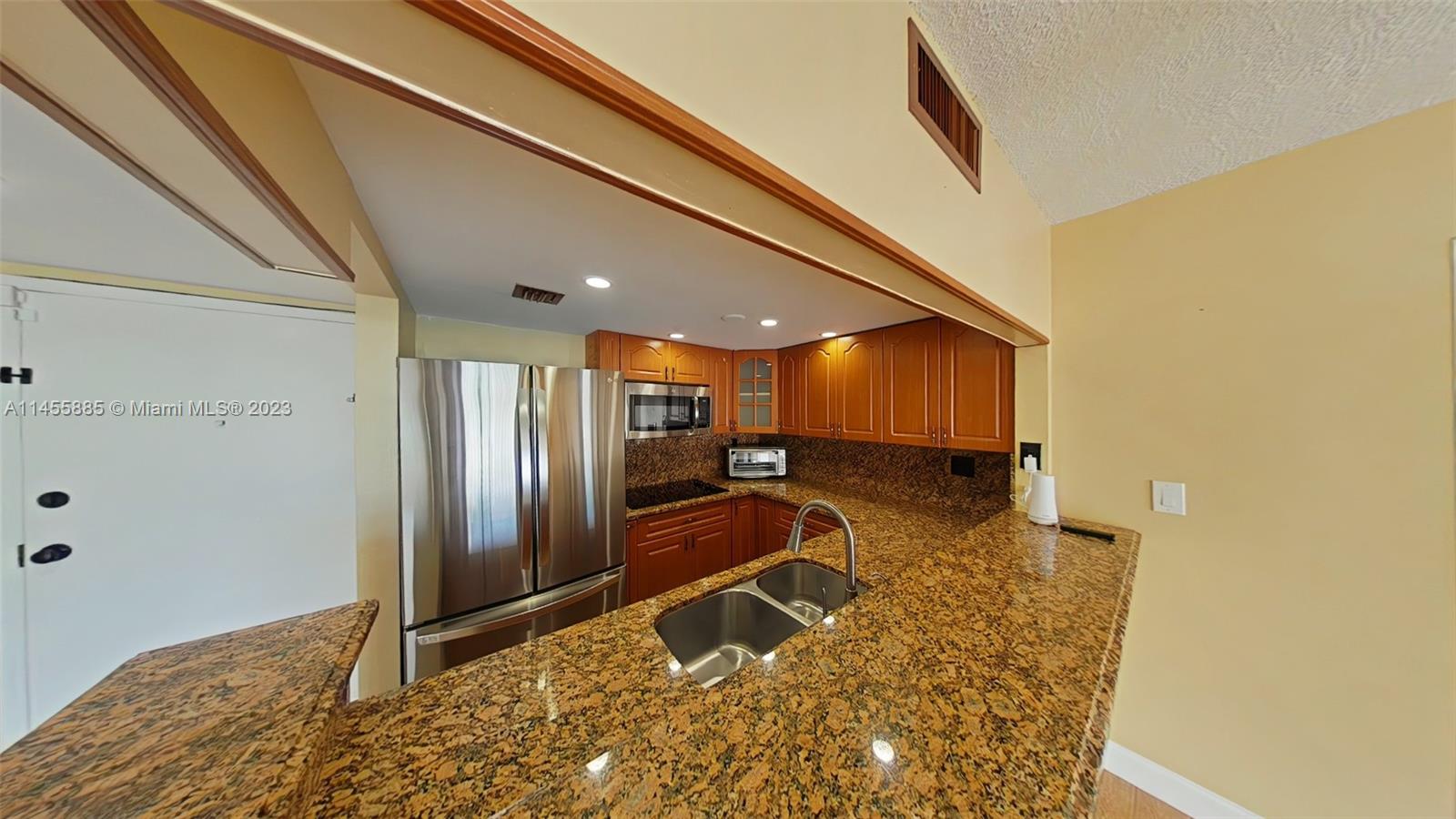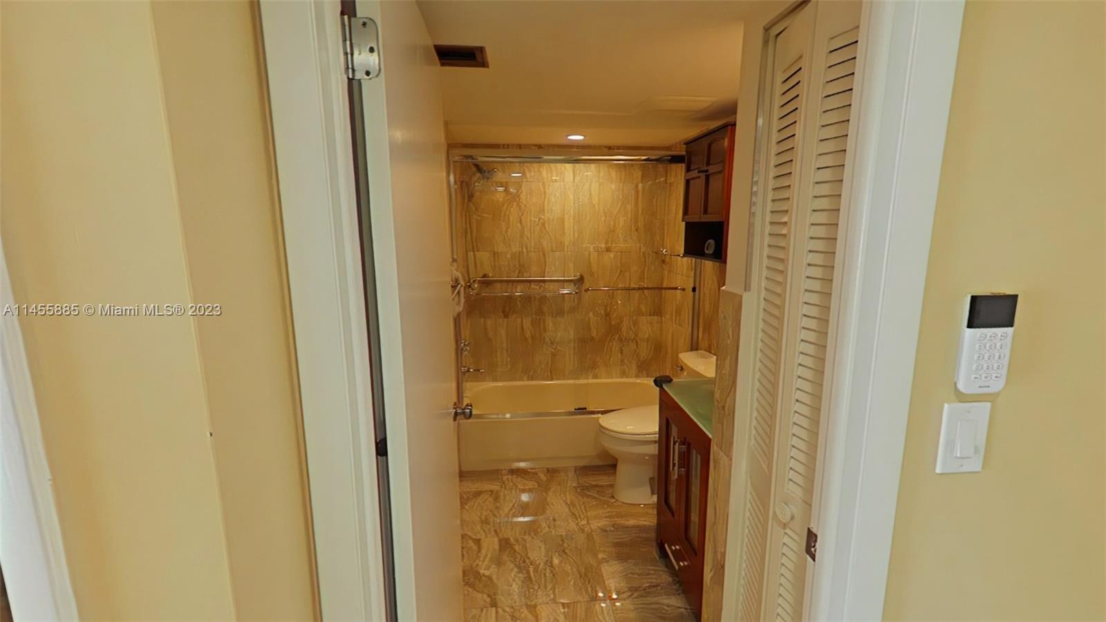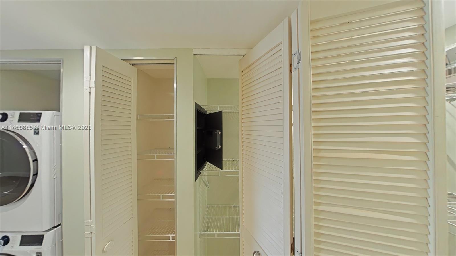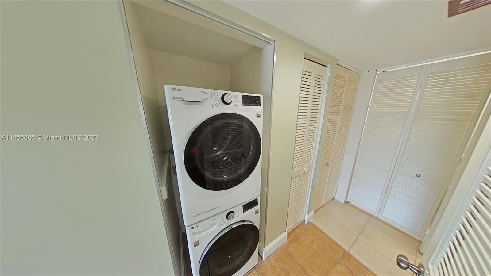 Look no further! Stunning 2bedrooms/2baths, 893 SqFt, 2 parking spaces, LG Smart/Efficient washer and dryer with extended warranty, Kitchen was redone worthy of a chef with LG stainless steel 4doors refrigerator purchased 2022 and granite countertops. Updated bathrooms with TOTO brand toilets, carbon monoxide smoke detectors, accordion shutters. Whole house smart security system including Ring Doorbell, Alarm System, NEST smart thermostat, and a personal in wall safe. Wraparound balcony accessed through three sliding glass doors which bring in lots of light throughout the unit. Black out thermal curtains for the sliding glass doors. Lots of closet space for storage needs. Remote controls for all three ceiling fans. Low maintenance fee. Ready to move in!