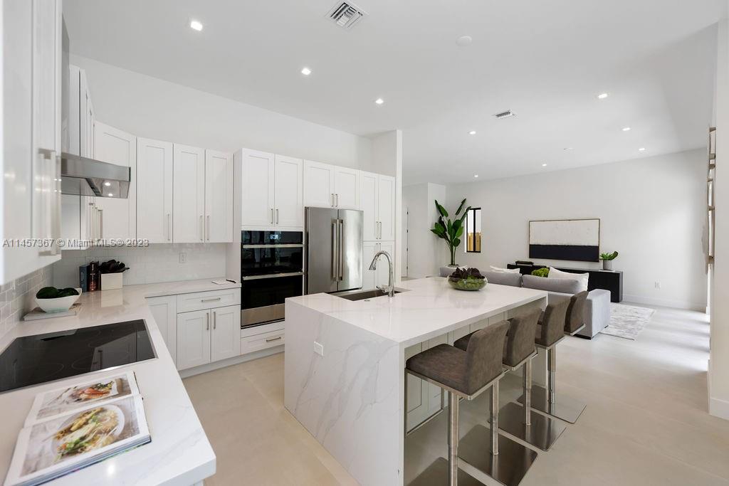 Striking New Construction Luxury Home located in South Dadeland’s sought after Continental Park. This stunning home is brand new and move in ready and spans 5 bedroom and 3- ½ Bathrooms. Greeted by a welcoming foyer entrance into an expansive open floorplan featuring a spacious family room, dining room and elegant chef’s kitchens with custom quartz waterfall counter tops and top-of-the-line Jenn Aire appliances. A convenient half bath for guests as well as one bedroom and on-suite bathroom downstairs. All remaining bedrooms including Master Suite are located upstairs. Call L/A for additional information. Central location to highways, schools, parks, restaurants, and shopping. Additional Features: impact windows/doors, metal roof, full upgrades.