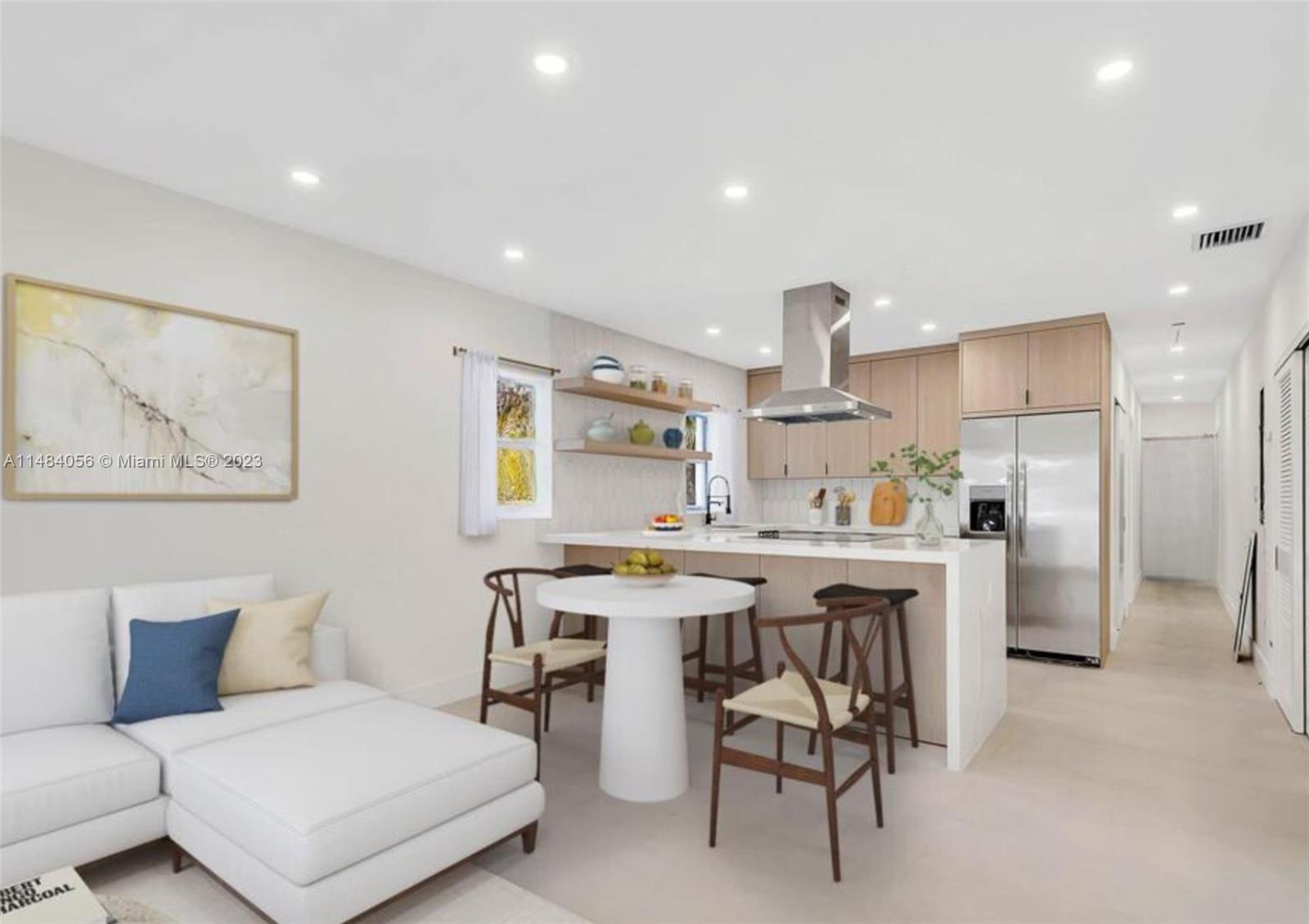 Introducing a masterfully redesigned and brand-new renovated 3/3 plus efficiency, in the heart of Miami. This exceptional residence showcases a symphony of new impact windows, plumbing, electrical, sub-flooring, HVAC, garage, and new roof that harmonizes seamlessly with the freshly painted stucco and original Art-Deco design, exuding elegance. Step inside to discover a full-gut high-end interior, unveiling 3 bedrooms, 3 bathrooms, and an expanded chef’s kitchen with stainless steel appliances and a countertop featuring a captivating waterfall design.