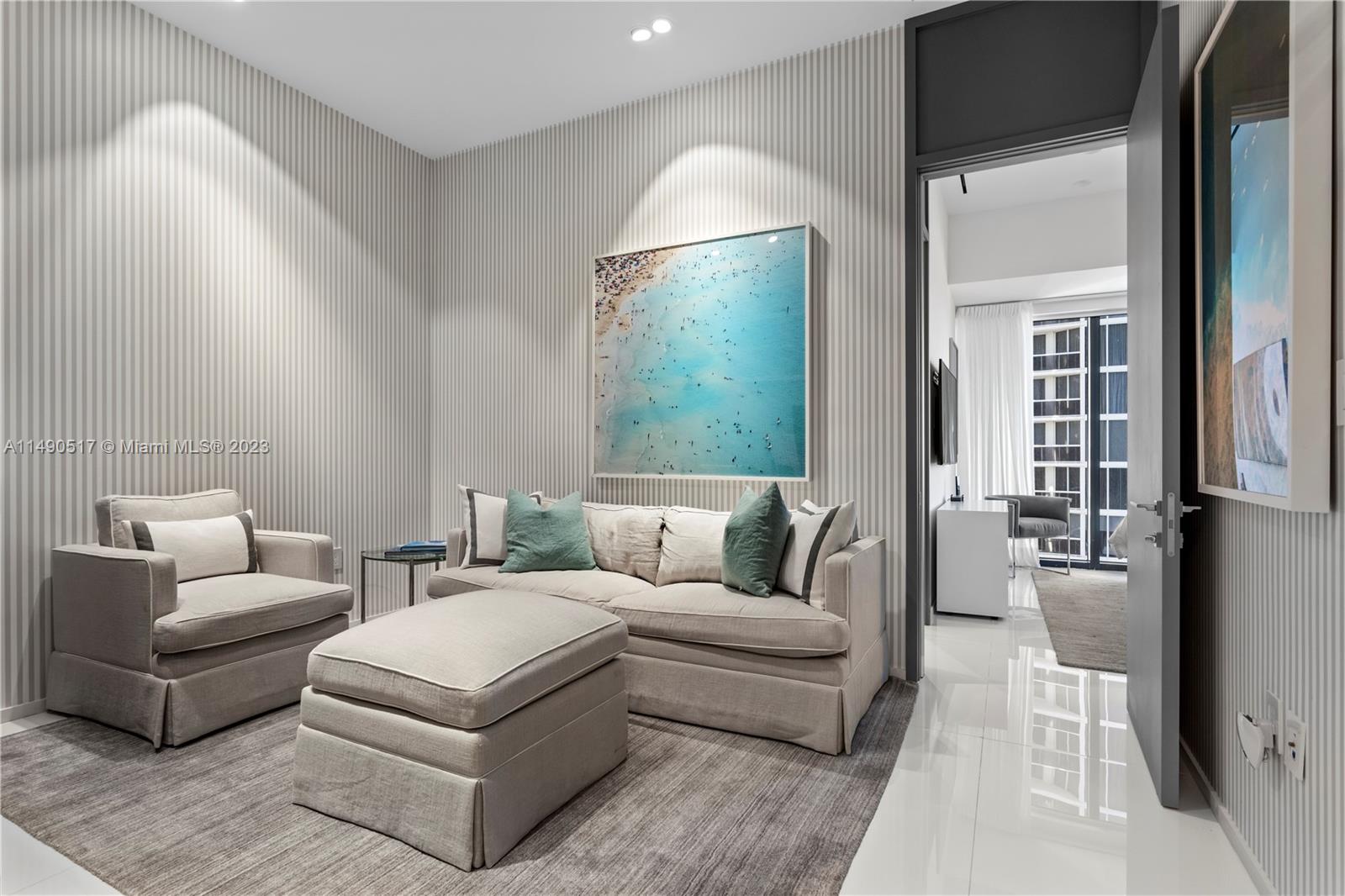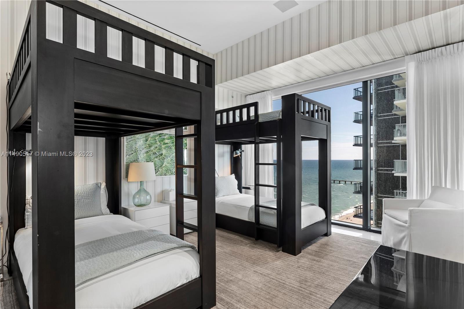 Welcome to Muse Residences, where luxury living meets oceanfront elegance at its finest! Nestled on the exclusive 15th floor, this exceptional residence offers a boutique lifestyle with a wealth of amenities. Step into this masterpiece featuring 3 spacious bedrooms, a versatile den, and 3.1 bathrooms, all adorned with 12-foot ceilings and floor-to-ceiling windows that grant you unparalleled vistas of the majestic ocean. State-of-the-art technology connects automated shades to audio system and cameras. Designed by the renowned William Simonato, this direct oceanfront residence is truly one of a kind. Fully equipped summer kitchen, complete with TV and speakers. Amenities include 3 valet parking spaces, community room, exercise room, cabanas, pool, sauna and children’s play area.