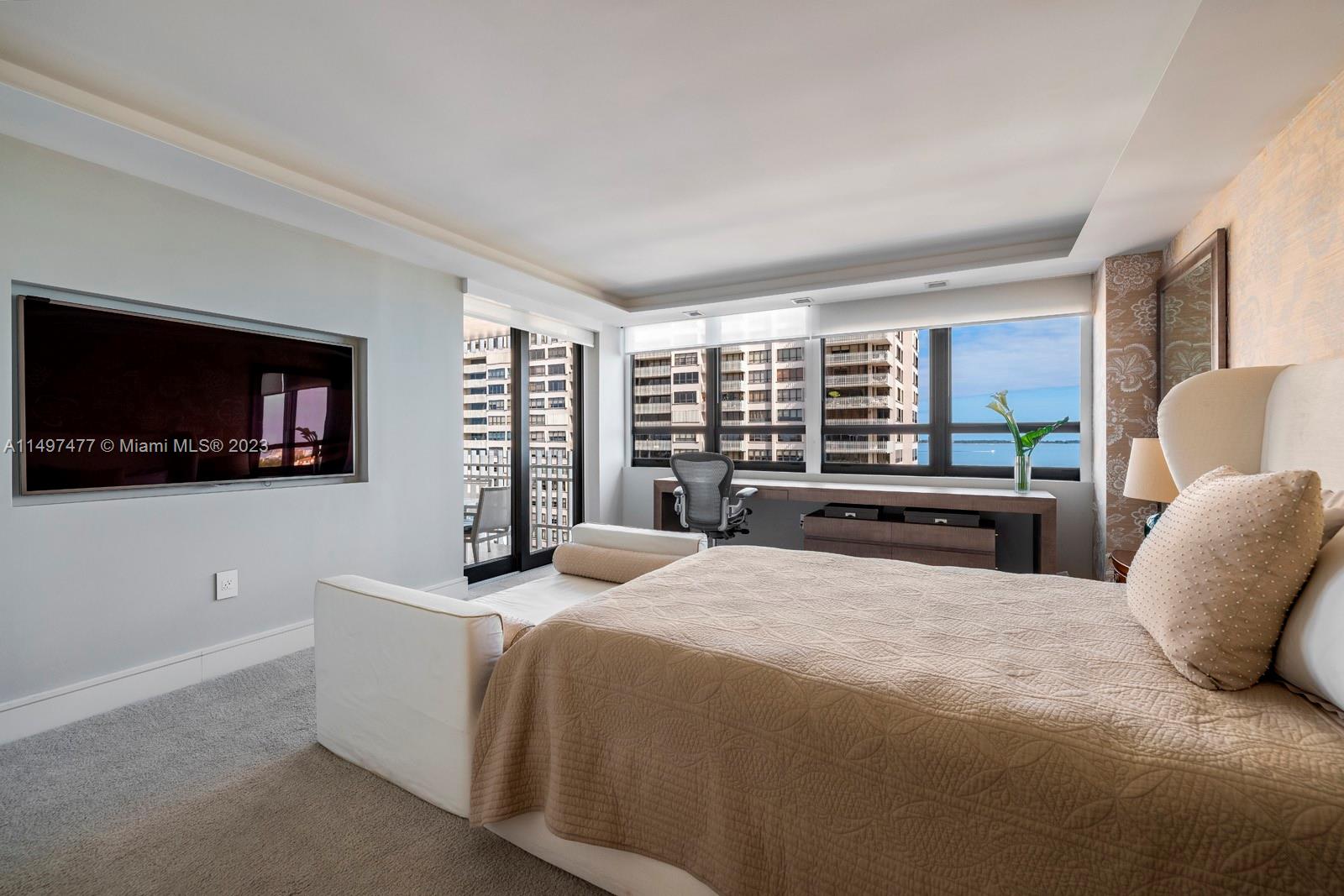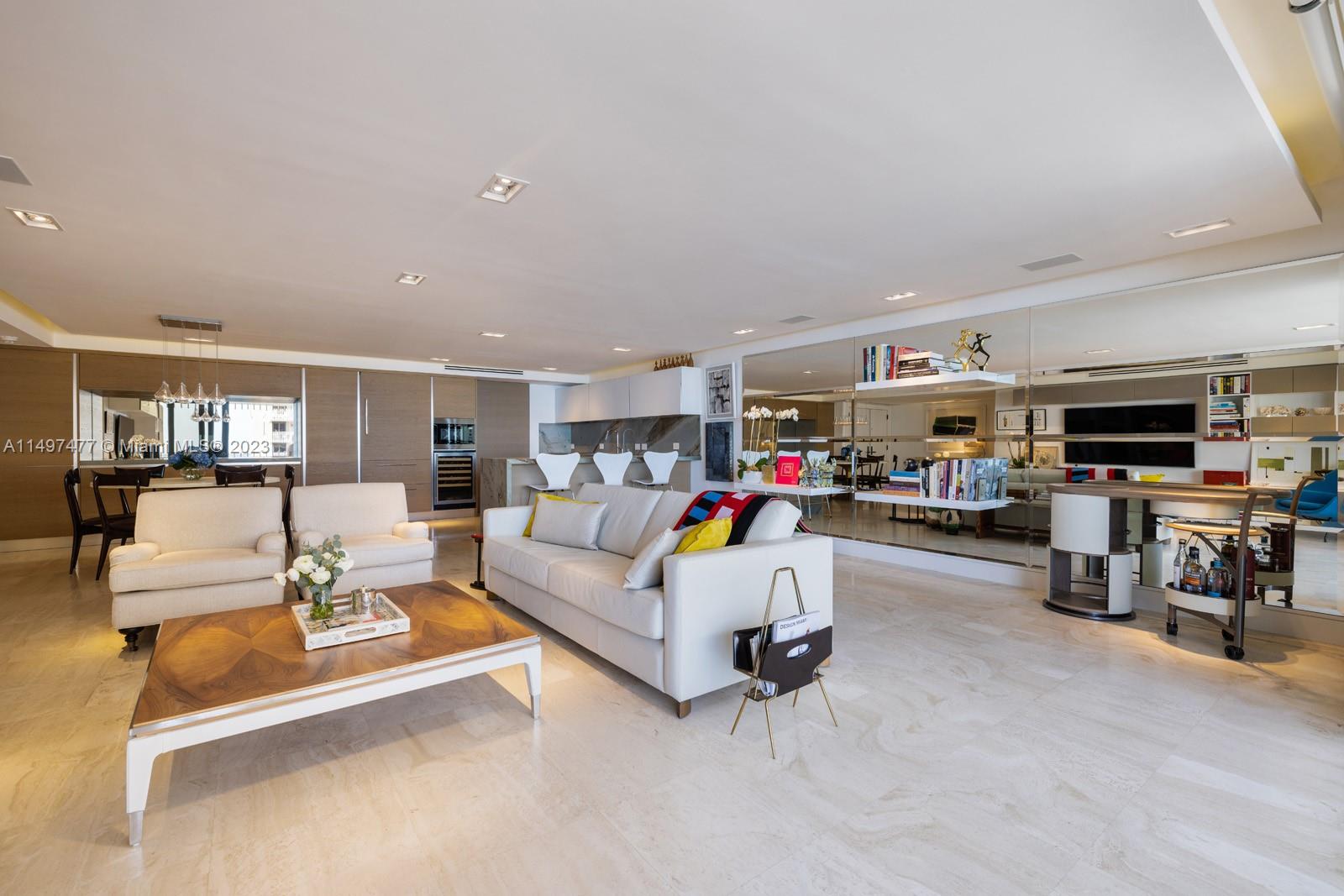 Discover luxury in this spacious Grove Isle residence. Upon entering, you are greeted with an open floor plan, expansive terrace, and beautiful wide bay and Miami city views from every room. Completely remodeled with built-ins, high-end finishes, contemporary furniture, modern art, surround sound system, recessed and cove lighting, and custom cabinetry. The chef’s kitchen is fitted with Miele, Bosch & Wolf appliances, a wine refrigerator, and pantry. Custom closets & bathrooms + a bath tub and double shower add sophistication. Grove Isle is a 20-acre gated island in Coconut Grove with full-services and amenities: 2 new pools & jacuzzis, 2 gyms, island walking path, club room, BBQ’s, and more. Offered Furnished! Included in rent: basic cable & internet, 2 valet spaces + weekly maid service.