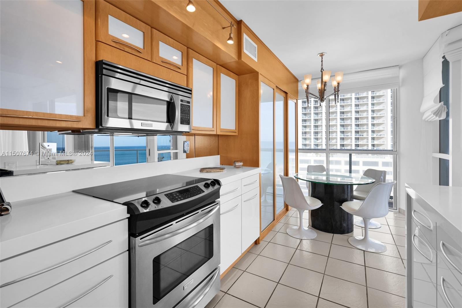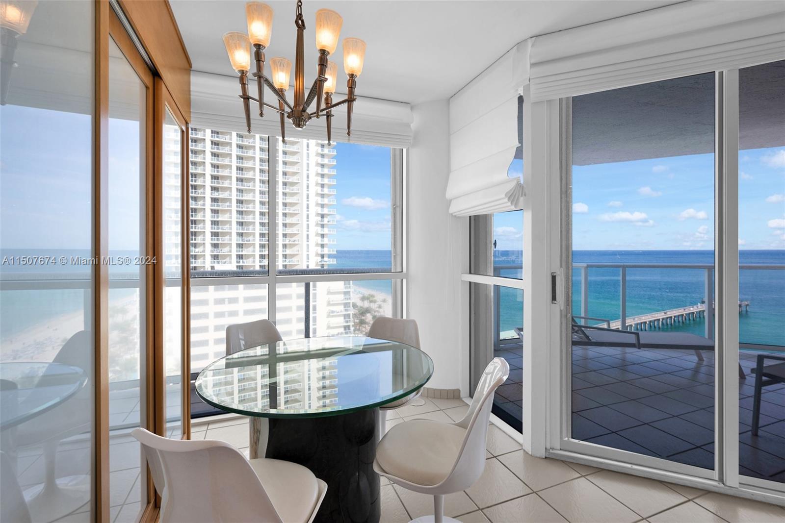 Sweeping 180-degree views in this premier full-service oceanfront community, offering restaurants, beach service, valet, front desk concierge service, in house gym and a full-service spa, hair salon, fitness center, outdoor pools and tennis court. The beauty of direct beach access living surrounds you and the clear Ocean breezes abound you. Open kitchen floor plan with large windows that bring in plenty of natural light that illuminates the residence. Impeccably kept, a pleasure to show!