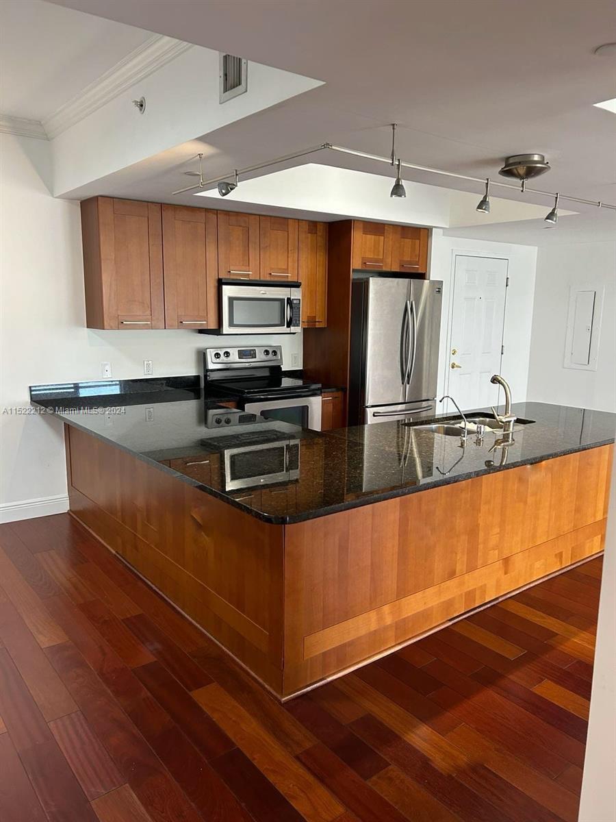 Beautiful penthouse on the market for the first time ever, located steps away from Merrick Park Village. This unit features wood floors throughout the entire unit, wood kitchen cabinets with granite countertops, stainless appliances, brand new dishwasher, larger master bedroom open to large terrace , with Split bedroom plan. Washer and dryer inside unit. Walking distance from Merrick Park, best restaurants and shopping. Low maintenance fees with great amenities, plus, plus, plus.