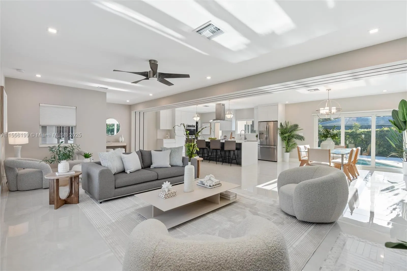 Elegant Miami Shore’s renovated estate home with a detached guest house on an oversized corner lot with gas generator. Seller financing available. This gem abounds with a breezy front porch, ceramic floors, a fireplace as well as impact windows. Lovely light-filled spacious rooms, a large eat-in kitchen with gas range, and an enormous main suite. The Florida room glass doors open to a relaxing pool and an expansive fenced backyard brimming with citrus, avocado and mango trees. Lots of parking with two gates and an EV car ready plug. Located adjacent to a cul-de-sac street, and offers a short distance to the bay, recreation center, tennis, golf, water park, local schools or shopping. Move-in ready! A Beautiful Miami Home. Make it Rein!