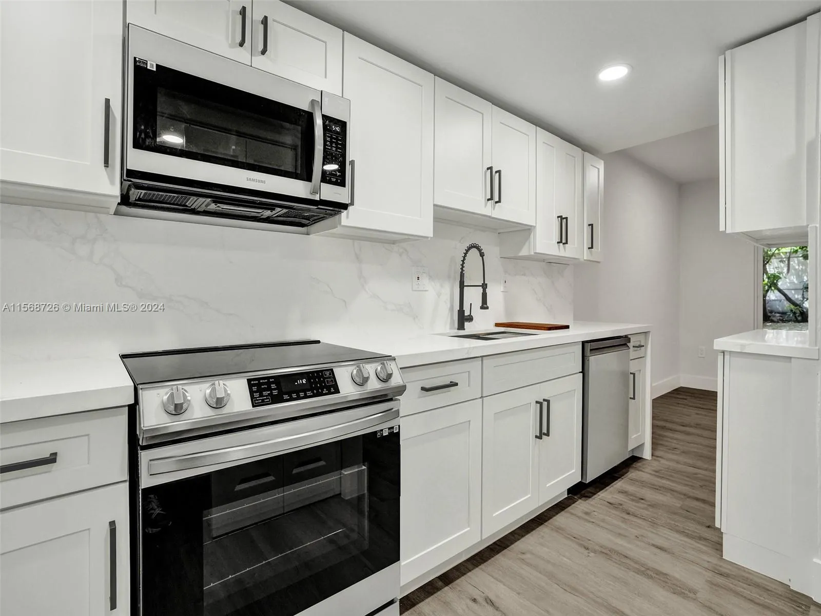 ALL OFFERS WELCOME. Located in Opportunity Zone. Welcome to this freshly renovated home, boasting modern finishes throughout. The open living space is adorned with sleek flooring and large windows creating a bright ambiance. The kitchen, a chef’s delight, features white shaker cabinets, quartz countertops, and stainless-steel appliances. Enjoy outdoor leisure in the private patio or the sunny balcony overlooking the yard. The bathrooms are a statement of elegance with marble-like tiles and contemporary fixtures. A turnkey haven ready for move-in! Relish the convenience of a dedicated laundry area, ample storage, and a cozy nook for work or study. Outdoors, a covered patio and a paved driveway enhance the appeal. Nestled in a serene Miami neighborhood, your perfect home awaits!