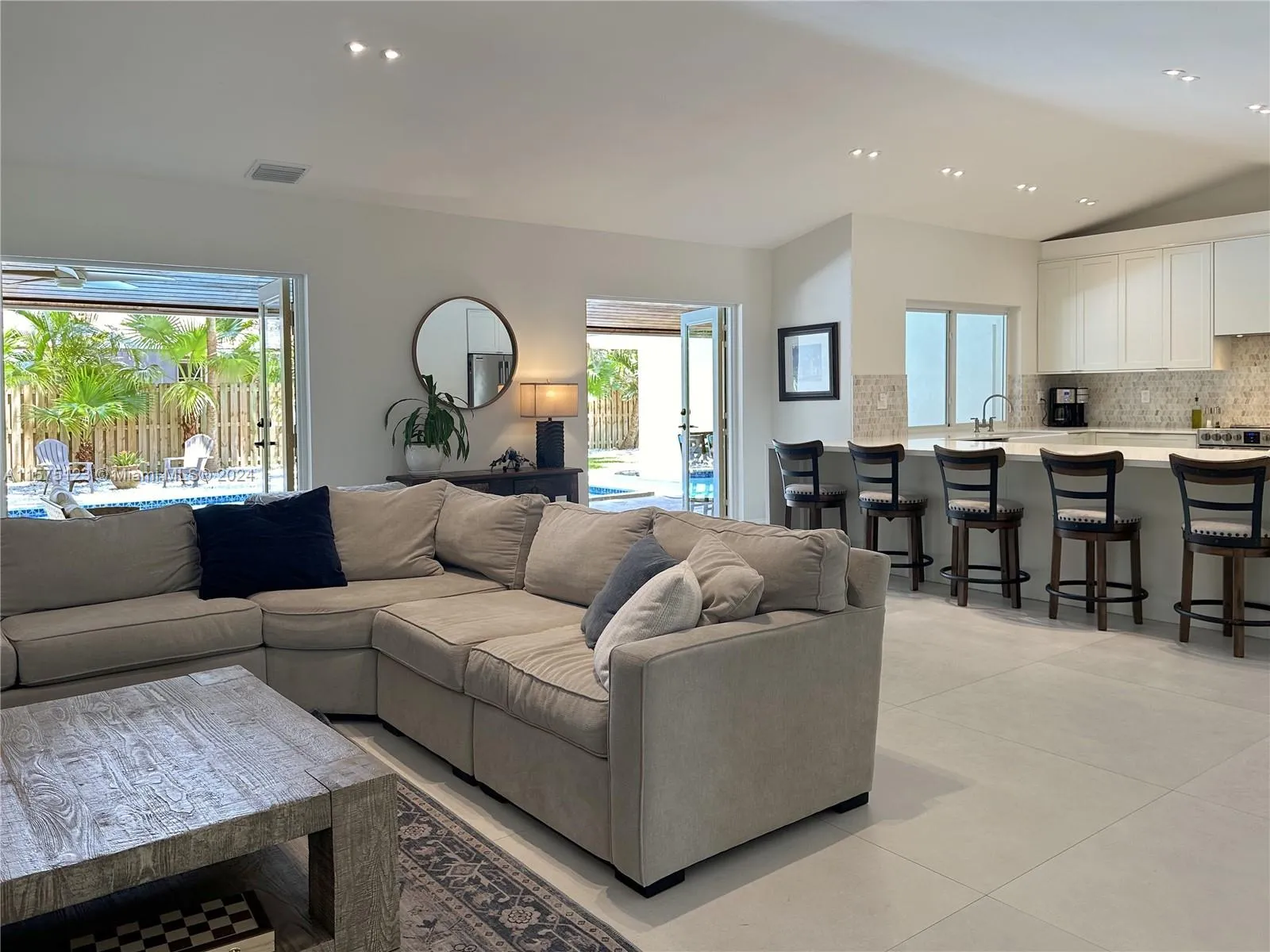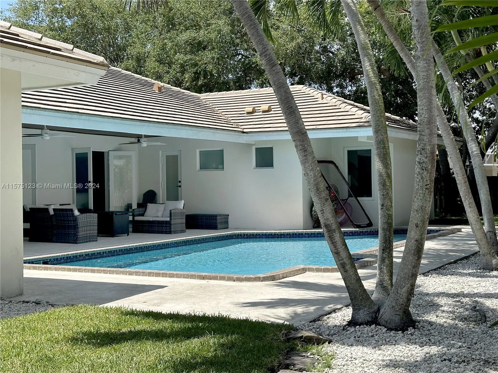 Beautifully remodeled in 2022, this home features 5 beds 3.5 baths in tranquil Palmetto Bay neighborhood. This split plan home features an amazing layout and design details including an open kitchen with eat-in quartz countertops, SS appliances, concrete tile roof, pvc plumbing, impact doors and windows, plantation shutters and dual ACs. The house has open, connected spaces perfect for entertaining and families. The layout includes the Master bed/bath and an additional bed/ bath on one side. The master bath features a double shower and separate spa tub area. The other side feature 3 beds and a Jack n Jill bathroom. The large covered outdoor patio is perfect for enjoying the pool and backyard areas.