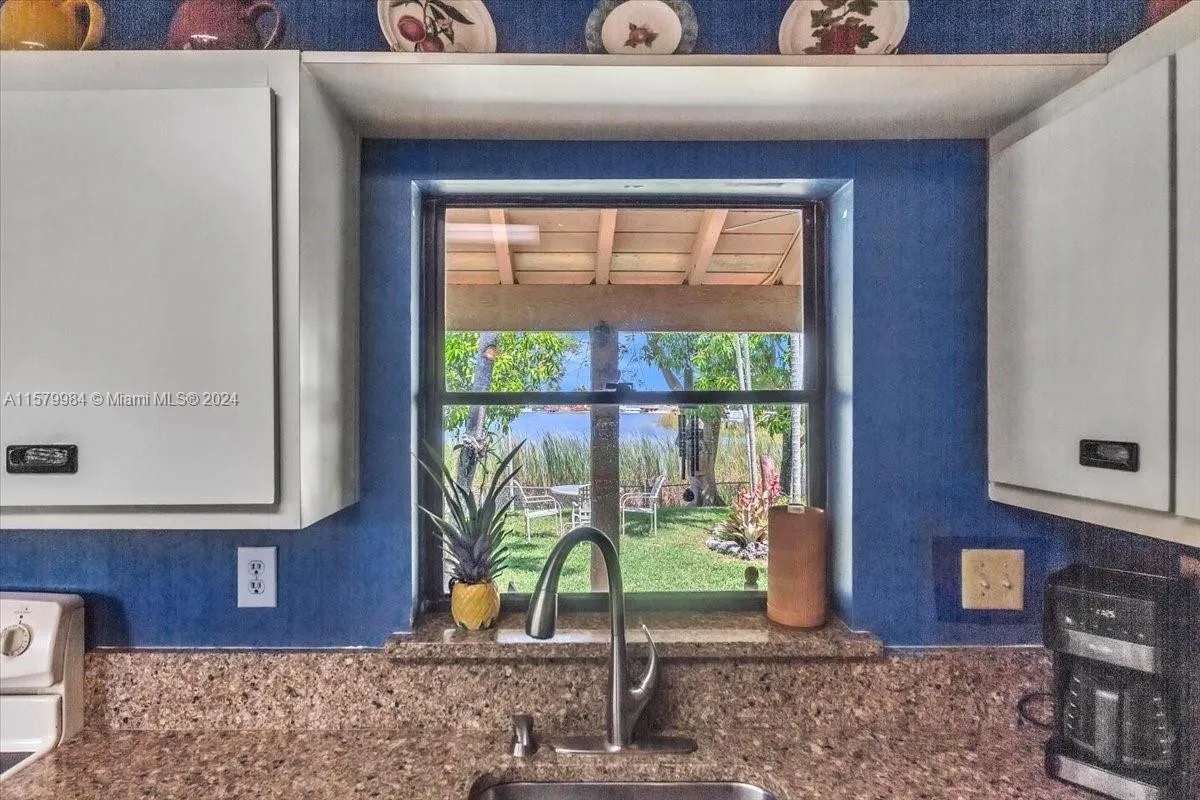 Welcome to your lakeside “OASIS”! This beautiful 4 bedroom, 2 bath home offers a perfect blend of comfort and tranquility nestled along shores of a picturesque lake. As you step inside, you are greeted by an abundance of natural light that floods the spacious living areas creating an inviting atmosphere throughout. The airy layout seamlessly connects the living room, dining area and kitchen making it ideal for both relaxing and entertaining guests. The open-concept living space features high overhead ceilings and direct access to the outdoor patio that beckons for al fresco dining and plenty of space for barbecue gatherings. Beyond the patio the lush lawn slopes to the sparkling lake. Yard has mango, avocado, palms for your enjoyment. Spacious bedrooms have ample closet space.