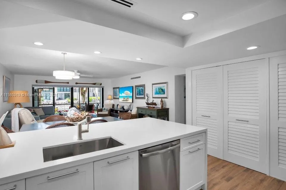 Rarely available ground floor unit in Buttonwood Bay offering double the outdoor space of the townhouses. Enjoy single-floor living with no stairs in this direct canalfront 2 bed / 2 bath condo, featuring a large screened-in patio and lanai. Includes an assigned 36 ft boat slip. Meticulously remodeled, it boasts luxury upgrades like porcelain wood floors, electric blinds, impact windows, quartz countertops and stainless steel appliances. Buttonwood Bay offers 5-star resort-style amenities including a clubhouse, 3 heated pools, gym, marine store, children’s library and game room, private beach, 6 pickleball courts, 5 tennis courts, basketball courts, boat ramp, trailer storage, and fish cleaning stations. Centrally located in the Upper Keys, Buttonwood Bay offers quick access to Miami.