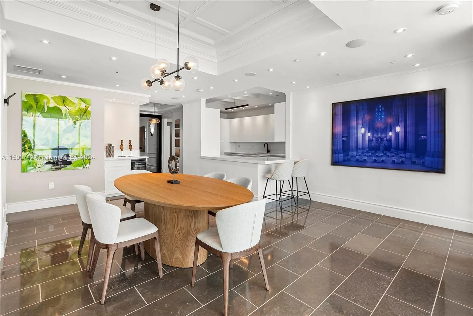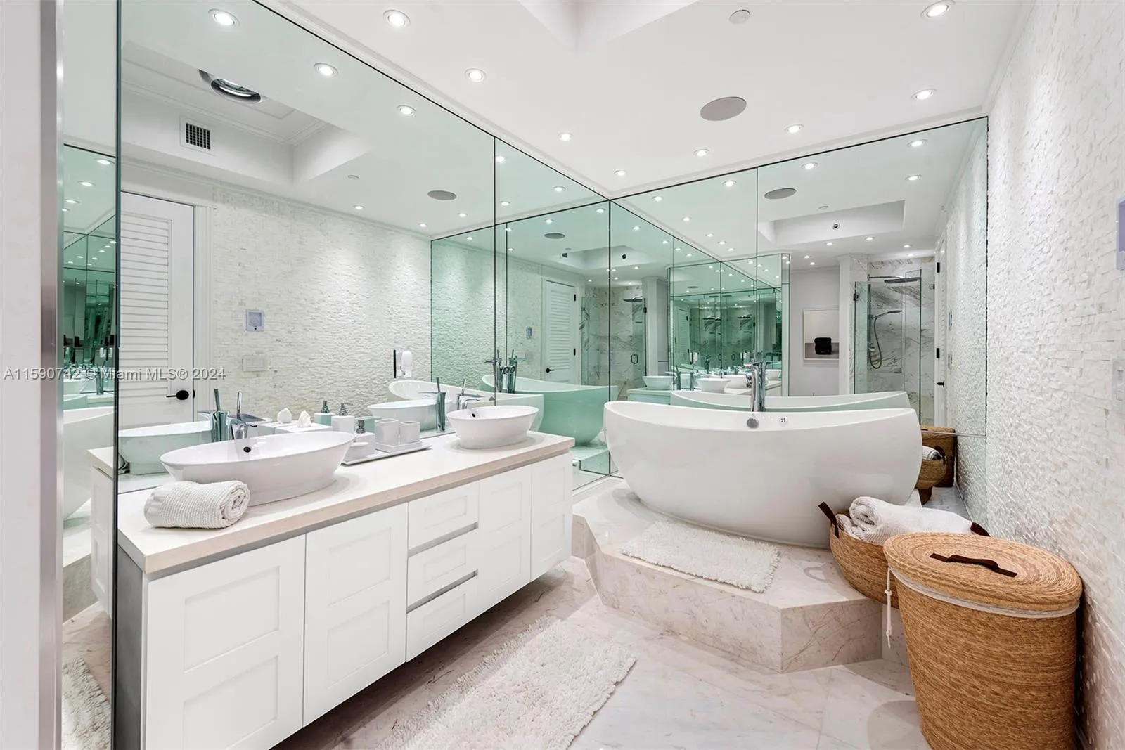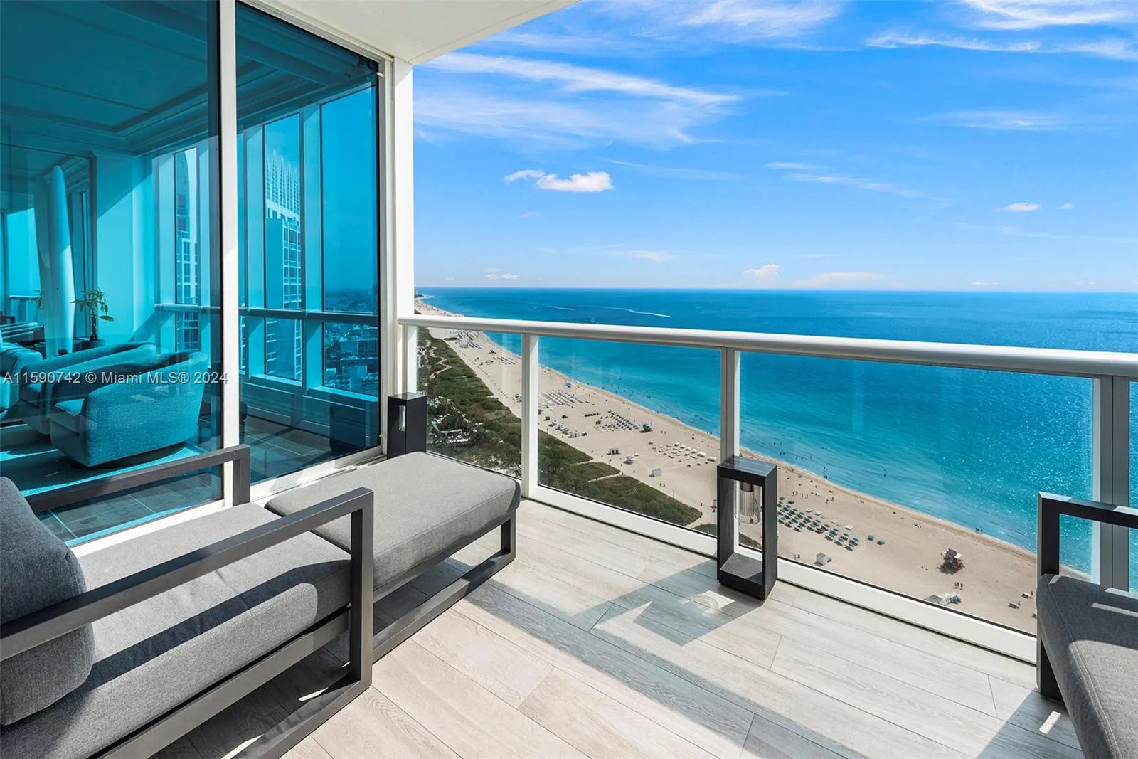 Exquisite upgraded interior design was just unveiled! Enter through an inviting private lobby into the turnkey furn. luxe condo and be mesmerized by pristine ocean views, S. Pointe Park and the Miami Beach ArtDeco skyline. Begin everyday with magical sunrises from anywhere in the home. Step outside to your terrace and relax on lounges capturing vistas form Pointe Beach all the way beyond Sunny Isles. New open kitchen features new Subzero, architectural lighting, quartz counters and streamline sink with matt-black fixtures. Large formal dining features bar area and climate controlled wine vault perfect for entertaining. Formal living features elegant built-ins, custom lighting and coffered ceilings. Principal suite features sitting area, millwork, spa bath w/floating tub +new WI closet.