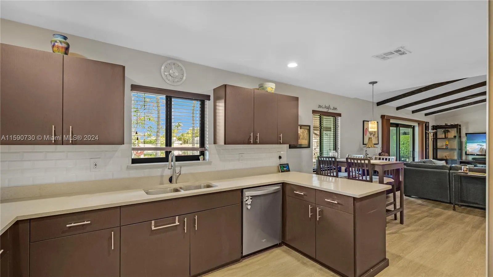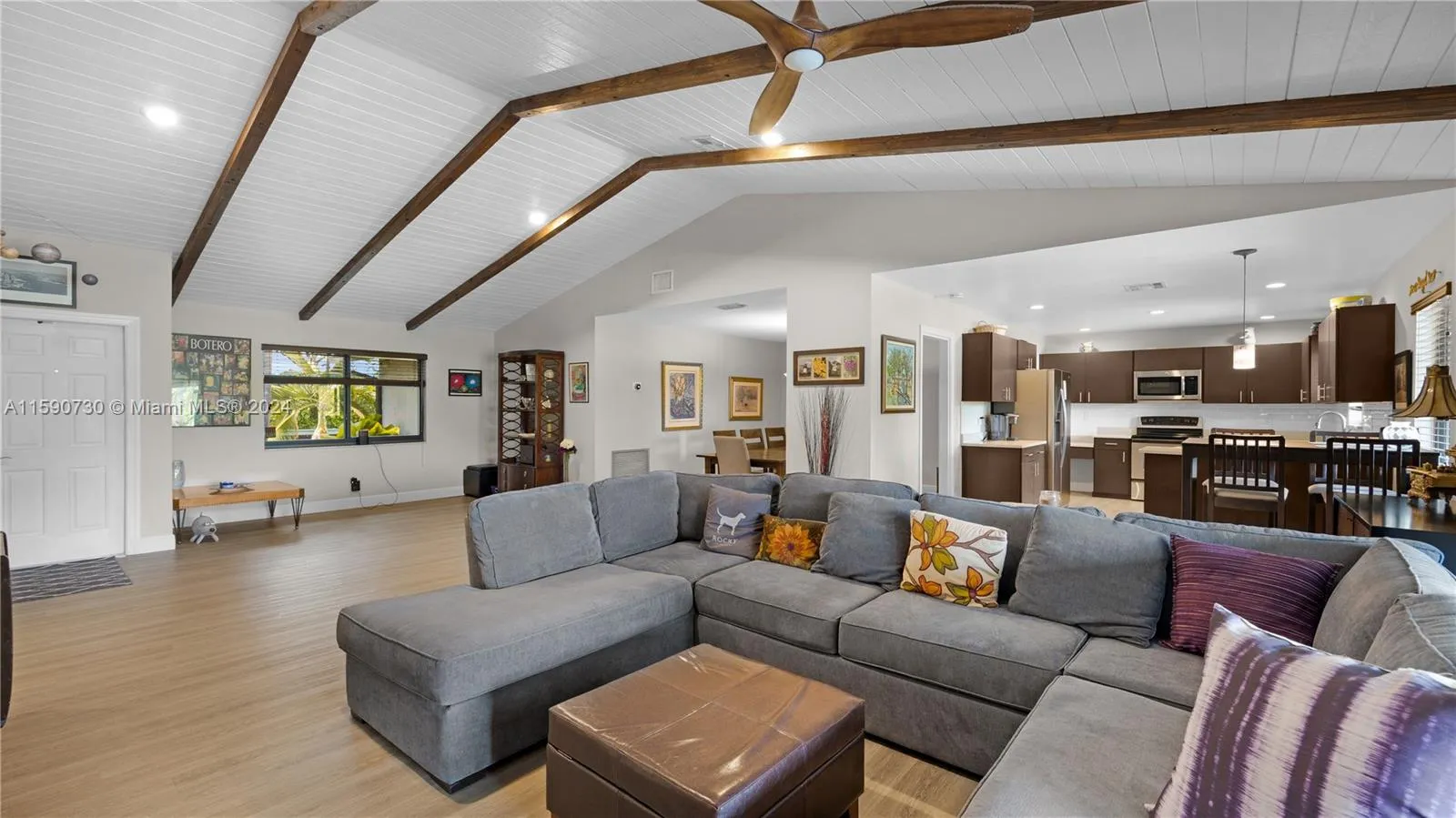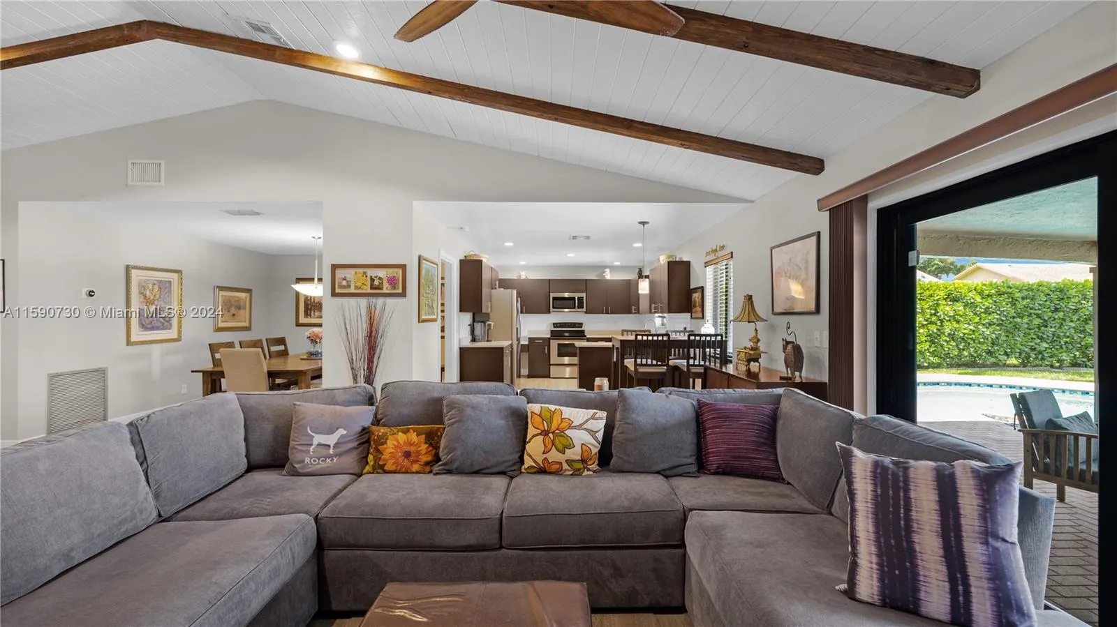 Davie-Rolling Hills Lake Estates~No HOA!~4BED/2BA/2 Car Garage w/ beautiful Lake & Pool Views~This 1-Story Home is Turn Key!*Highlights include:Open-Concept Floor-plan w/Vaulted Cedar ceilings & decorative wood beams~Modern Kitchen cabinets w/SS appliances & Caesarstone countertops~Luxury,indestructible vinyl flooring throughout common areas~*Giving center stage to all “Big Ticket Items” completed in 2016*Roof & Gutters~HVAC~H2O Heater~Impact Windows, Doors & Garage Door~*2017 Electric panel, 9′ custom garage workbench and epoxy floors~Generac generator 50Amp w/cable & hook up~Minutes to NSU & all Davie Campus colleges, HCA hospital, Dining, Nightlife ,Airport~,Bamford Park w/Pickleball!,Trader Joes,Whole foods~Top area Schools & NO HOA make this a solid future investment! It’s a Must See!