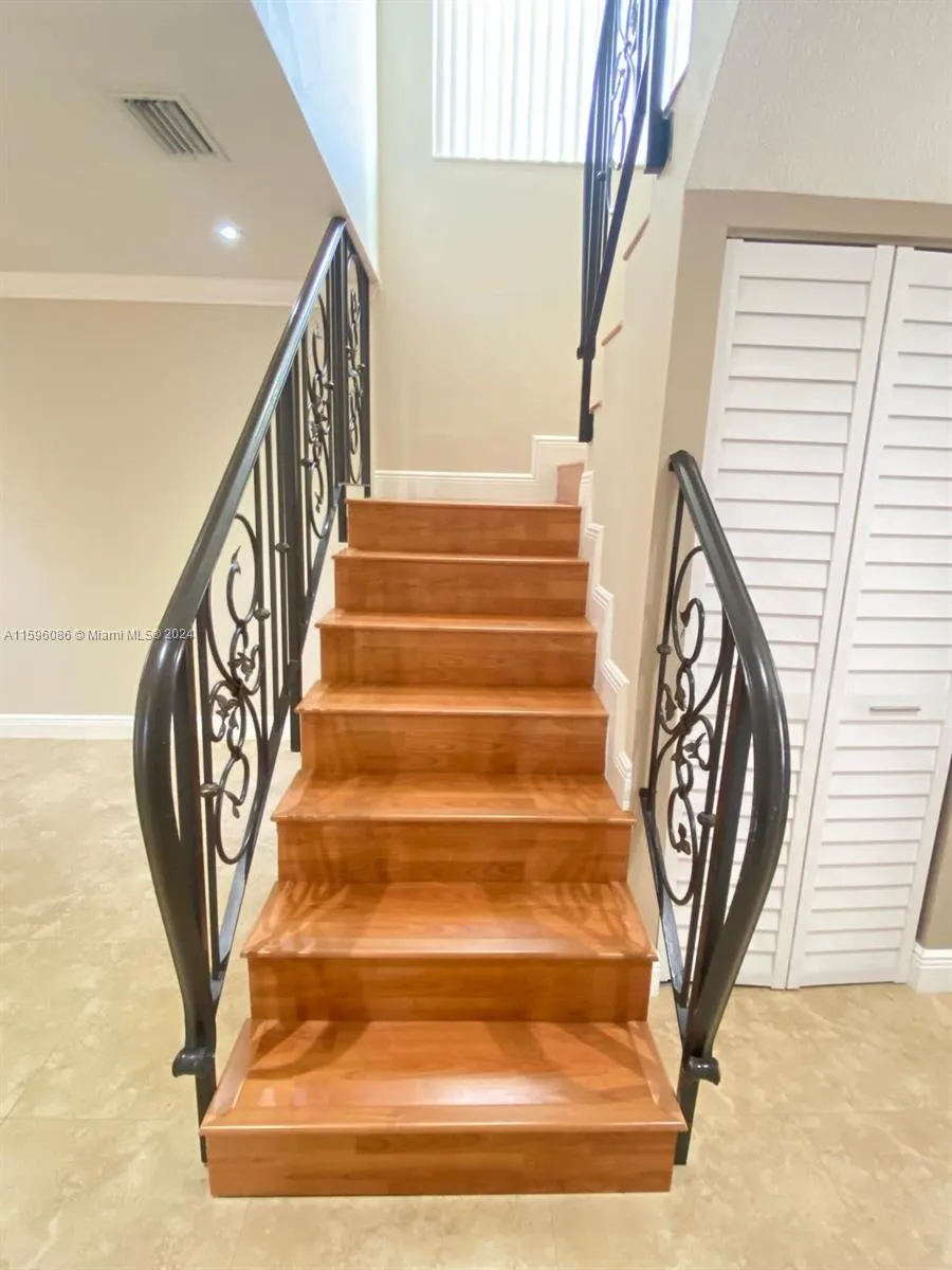 Beautiful bright home, full of upgrades, nestled in a serene neighborhood. This amazing 2-story home features an open concept layout on the first floor with living, dining, kitchen, half bathroom & family room. Three bedrooms and two full bathrooms upstairs. Uniform 24X24 tiles through. Chef’s kitchen with granite counter tops & back-splash. Custom wood cabinets with soft closed drawers & pull out rack feature. Energy saving stainless steel appliances. Pantry / Laundry room, off the kitchen. Custom vanity furniture in all bathrooms and lots of closet space. Great backyard for entertainment. Home exterior was just painted and roof washed. Driveway will be painted and exterior lights will be replaced. Great location, close to turnpike & Dolphin expressway. NO HOA!