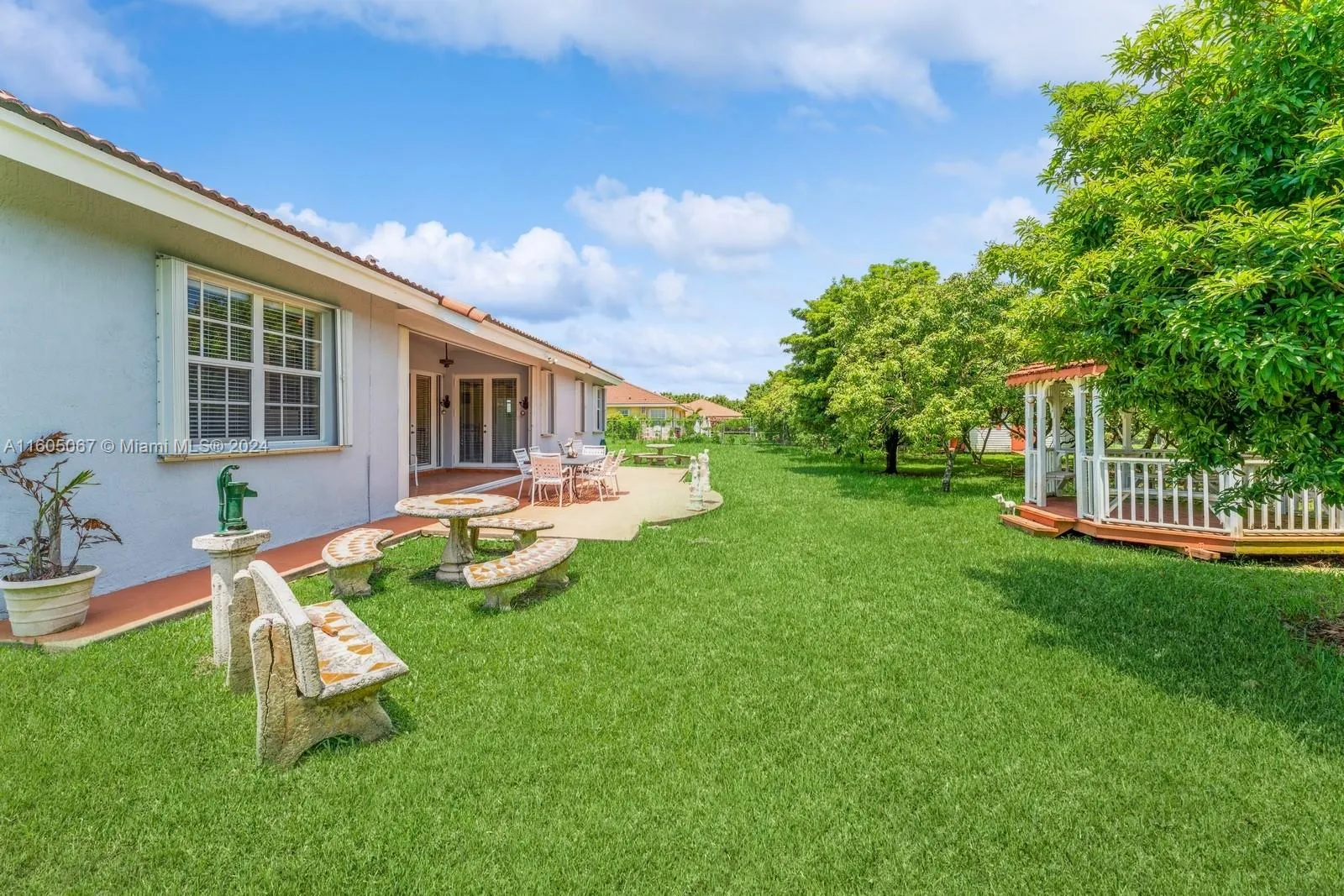 This hidden gem sits on a quiet street in a very nice residential area. Positioned in close proximity of Krome Ave but at the same time away from it to have the peaceful enjoyment the Redlands offer. The home is a 4 bedroom/3 bath with stunning vaulted ceilings and lots of windows for great light. As you enter the home you are greeted by 86 full grown fruit bearing trees. The lychees are a wonderful source of income. There is a storage shed and also a fenced in dog run. The entire property is fenced and irrigated. Keep your boat and other toys on-site. This property is not in a flood zone. Make this your dream home.