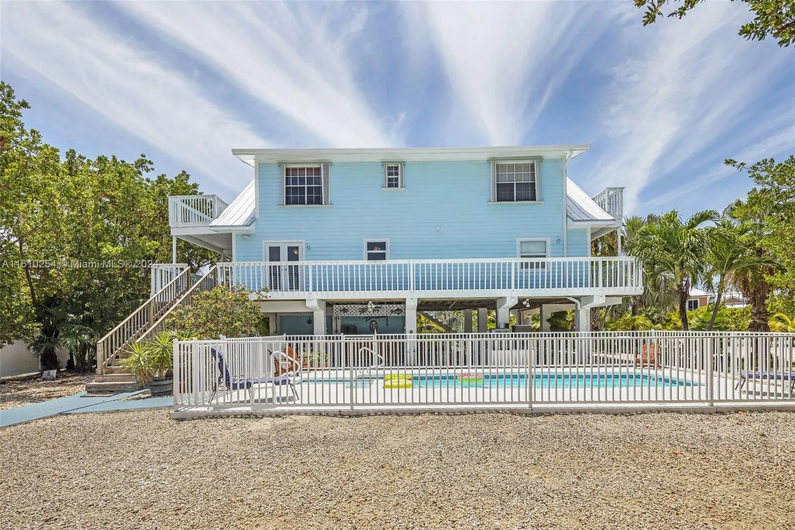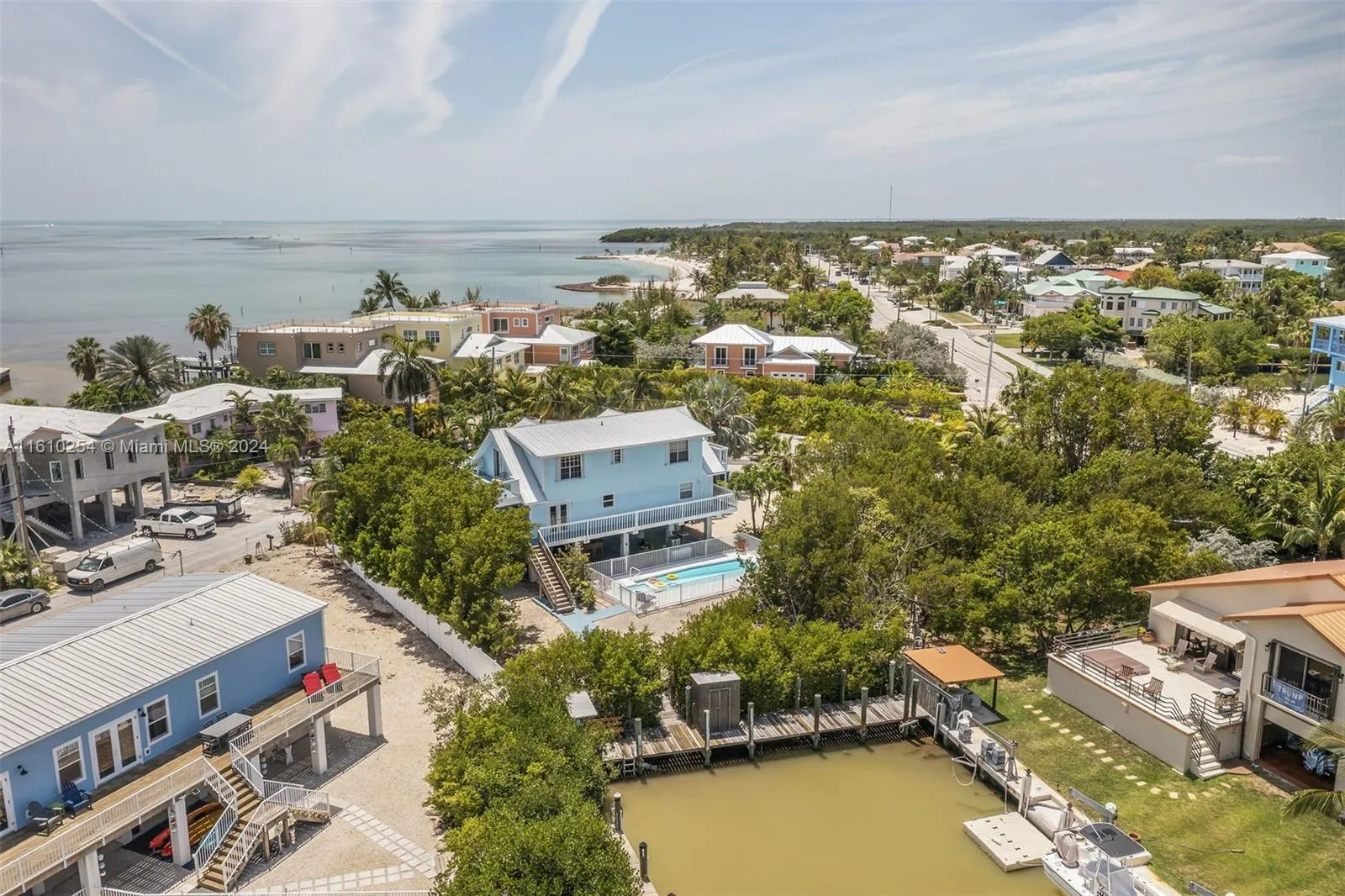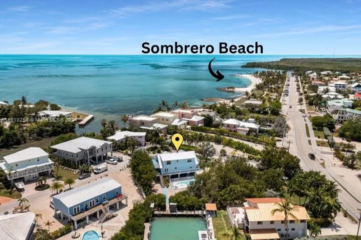 Uncover your coastal treasure with this spacious two-story home, situated on a massive 15,550 sq. ft. lot beside Sombrero Beach, offers both direct beach and ocean access via its 34 ft. dock, along with immediate rental income potential. Stroll back from the beach (just 0.1 miles away!) to discover a private, heated pool with a built-in spa and a shaded bar area that perfectly encapsulates outdoor living. The wrap-around deck leads from covered parking into a tiled, neutral living space featuring a granite kitchen with a sprawling peninsula bar that seats six. This level also includes two spacious bedrooms and a full bath.Upstairs, you’ll find additional porches, two more bedrooms, and two, including one ensuite.