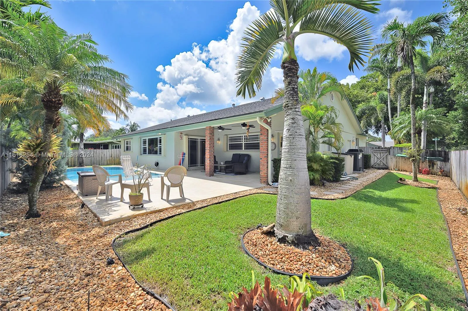Truly move-in condition Pinebrook built “Live Oak Model” 3 bedoom 2 bath – in ground pool – full 2 car garage – remodeled kitchen and baths – designer interior – crown molding – extra wide brick paver circular driveway – professional landscaping – ” Pride Of Ownership ” displayed throughout – full home storm protection (accordion shutters & panels) ADT alarm system – large corner lot – quiet street location – outstanding Cooper City schools – Griffin, Pioneer, CCHS. NO HOA FEES – call listing agent if any questions.