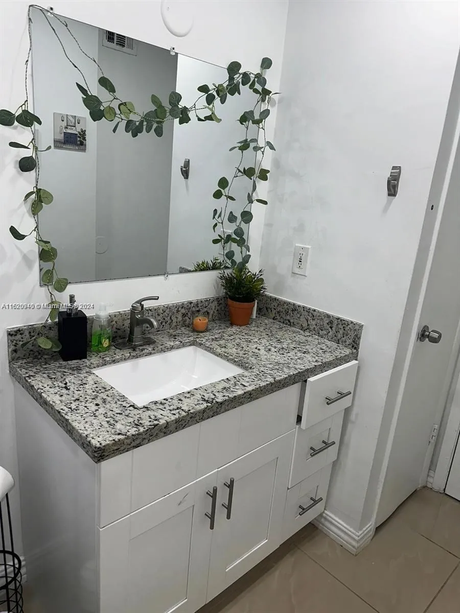 This stunning 2-bedroom, 2-bathroom unit features tile flooring throughout. Each bedroom is a master suite, complete with private bathrooms and generous walk-in closets. The kitchen has been thoroughly modernized, boasting granite countertops and stainless steel appliances. The laundry room, equipped with a washer and dryer, is conveniently situated within the unit. The screened-in balcony (mosquito-free) offers a pleasant view of the garden path, leading to the pool and children’s park.