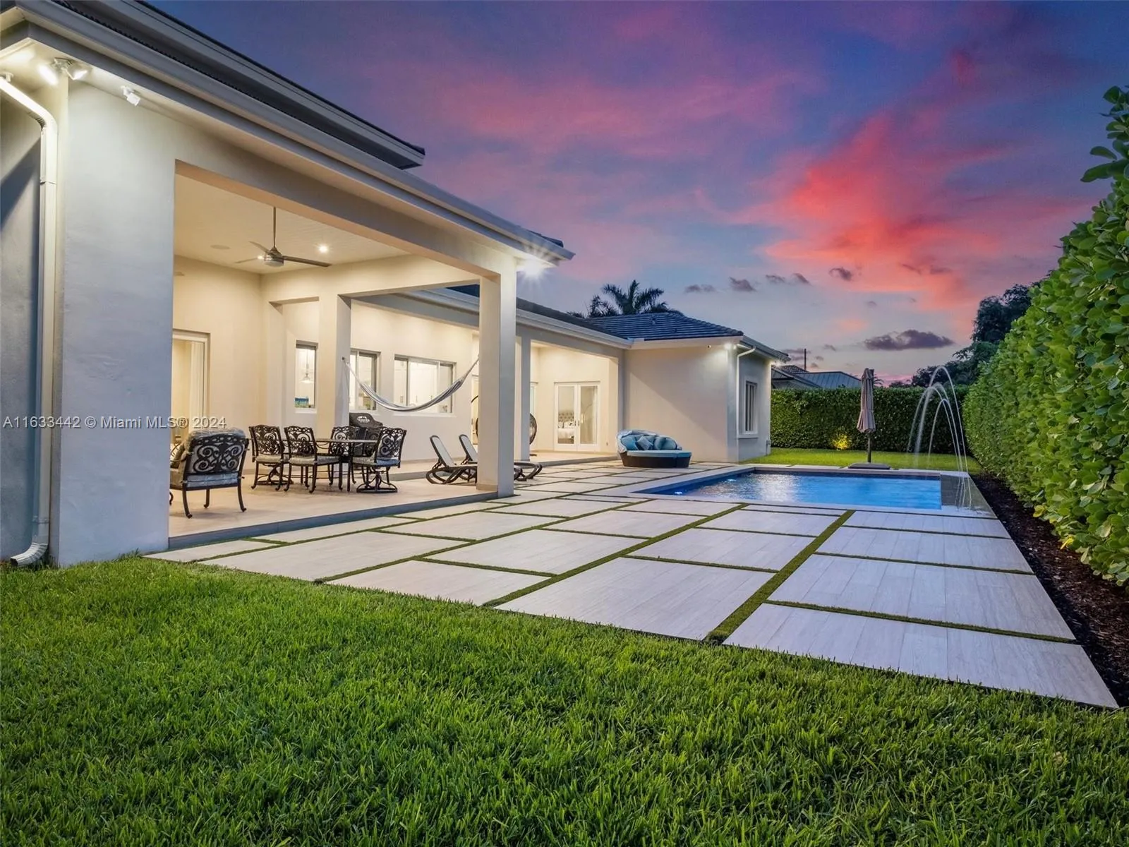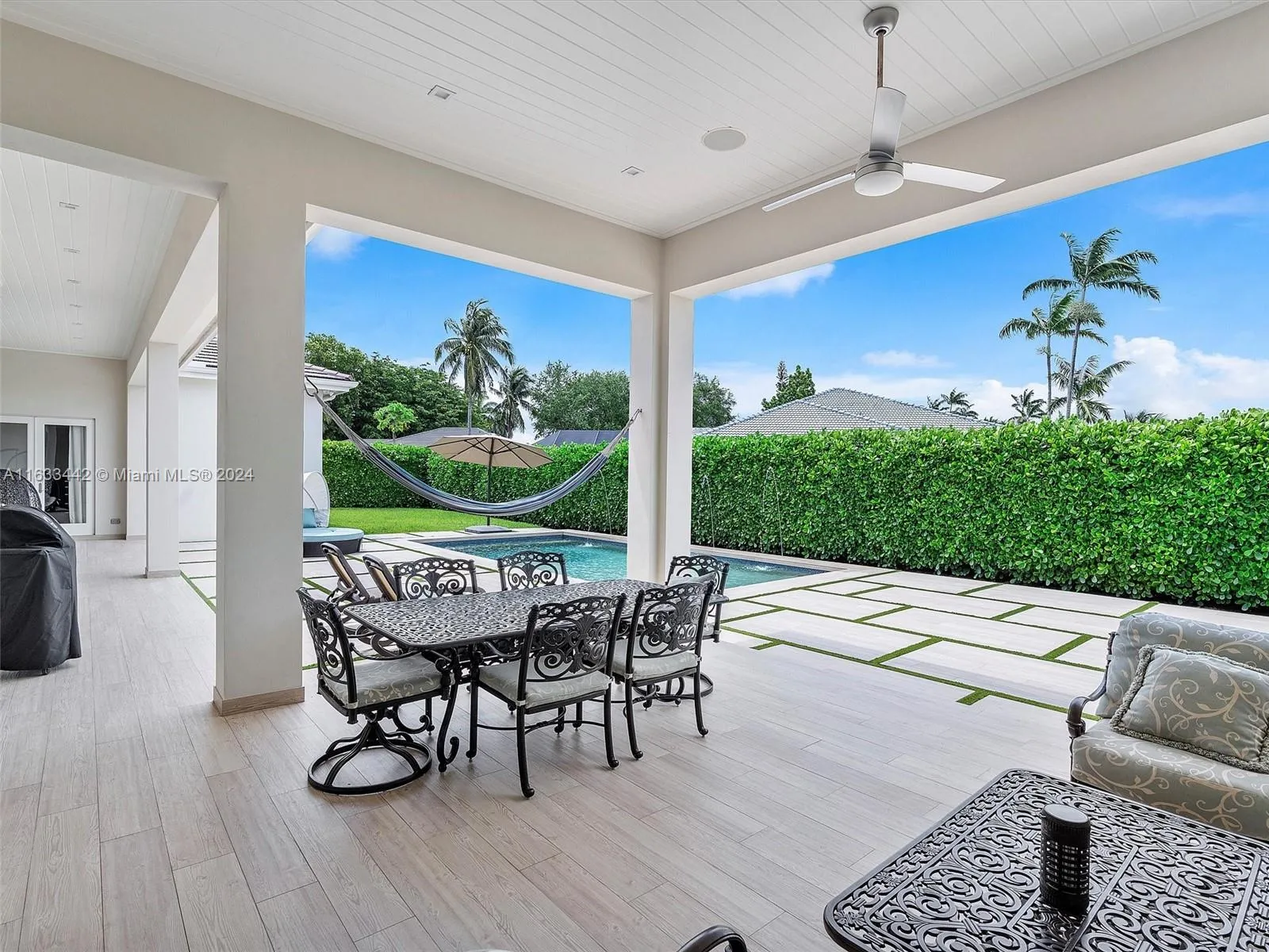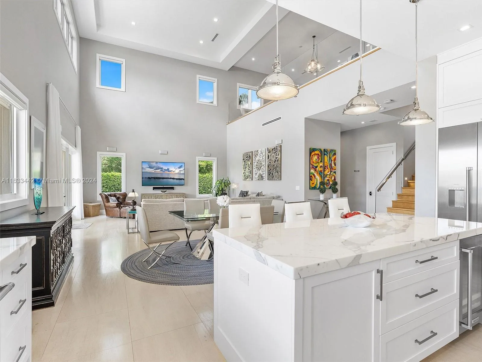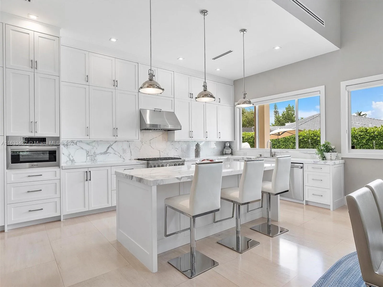 Welcome to this exquisite 4-bedroom, 4.5-bathroom home, where elegance meets modern comfort. The open-concept design showcases luxurious Italian stone and European oak flooring. The gourmet kitchen features Carrara marble countertops, and high-end Thermador stainless steel appliances. The grand primary suite is complete with a private terrace, dual closets, and a spa-like Carrara marble bath. Additional spaces include a versatile den/office and a stylish lounge area. The oversized 2-car garage is equipped with storage, epoxy floors, and 2 EV chargers. Outside, you’ll find a saline pool & large yard. Bonus features; impact doors, windows, and premium shades. Conveniently located near top-rated schools, Deering Estate, and scenic parks, This is an exceptional property.