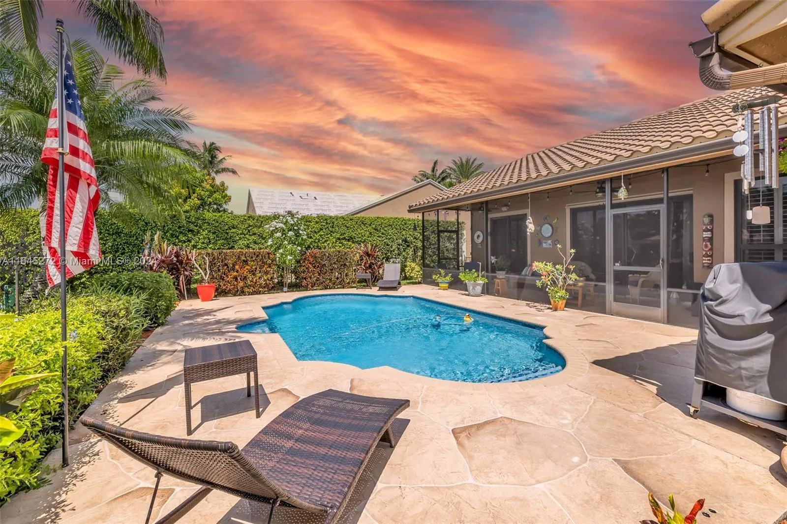 WELCOME TO PURE PARADISE! THIS TRUE 4/2 SPLIT PLAN HOME IS COMPLETELY UPDATED WITH DECORATOR TOUCHES EVERYWHERE YOU LOOK. GOURMET CHEF’S KITCHEN, OFFERS NEWER HIGH-END APPLIANCES, CHERRY WOOD CABINETS, SILESTONE COUNTERTOPS, BAR SEATING PLUS CASUAL DINING WITH A VIEW. NEUTRAL TILE & VOLUME CEILINGS THROUGHOUT. CABANA BATHROOM. PRIMARY SUITE OFFERS SPA LIKE BATHROOM & BREATH-TAKING VIEW OF POOL & WATER. FORMAL DINING ROOM, LIVING ROOM & SEPARATE FAMILY ROOM. HURRICANE IMPACT WINDOWS & DOORS. A/C 2022, ROOF 2018, WATER HEATER 2024, SMART SPRINKLER SYSTEM 2023. WHOLE HOUSE WATER SOFTENER. STEP OUTSIDE TO YOUR VERY OWN PRIVATE, TROPICAL OASIS THAT IS METICULOUSLY MAINTAINED, WITH SCREENED LANAI. LOW HOA. CLOSE TO EATERIES, SHOPPING, HOUSE OF WORSHIP WITH QUICK ACCESS TO SAWGRASS EXPY.