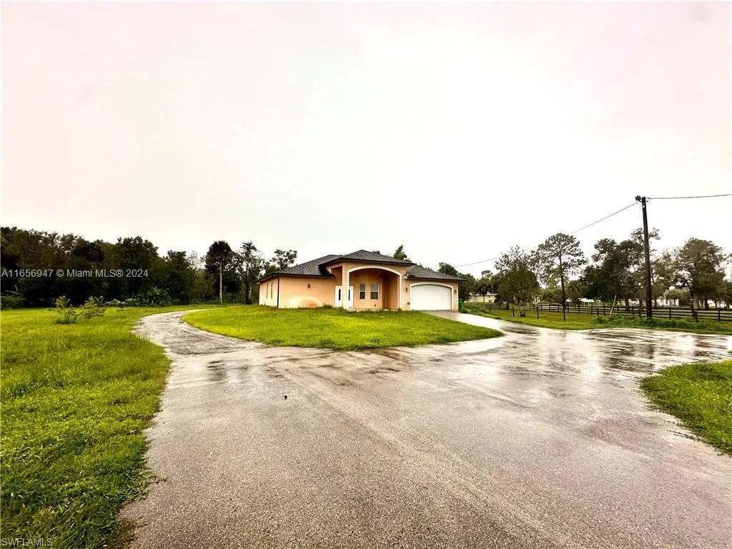 Welcome to this beautiful Home built in 2018, located in Naples, Florida. This 2.73-acre Home is fully fenced with plenty of space, fruit trees, and an automatically controlled entry gate. This House is on a dead-end street for more privacy. 3 bedrooms and 2 bathrooms, walk-in closets, living room, dining room, kitchen and outdoor kitchen on the large, screened Lanai, and under trusses with special insulation throughout the house, making this property energy efficient. 2-car garage, Washer and Dryer included. Schedule a private tour today! Agents, please read the remarks.