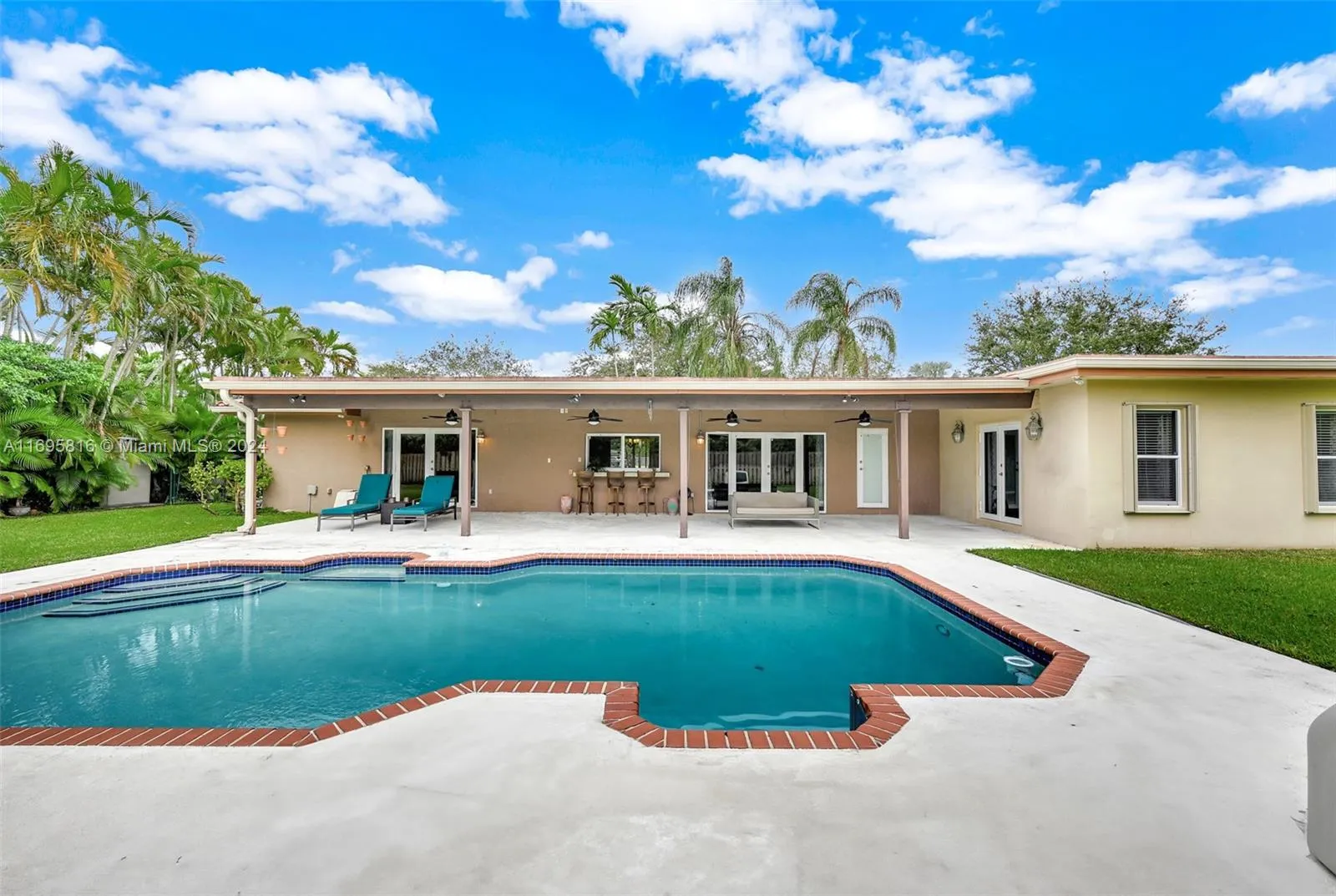 First time on the market, this spacious 5 Beds, 3 Baths home is located in the highly sought-after Pine Shore neighborhood, near A+ schools and family-friendly amenities. Designed with comfort and functionality in mind, the home features open living spaces, an updated kitchen with stainless steel appliances, and a large family room that flows seamlessly into the covered terrace & pool area ideal for entertaining or everyday family living. The 15,000 sq. ft. lot provides plenty of space for outdoor activities, while the interior boasts generously sized bedrooms, including a primary suite with a luxurious jacuzzi tub and stand-up shower. Practical upgrades, such as hurricane accordion shutters & impact windows, offer peace of mind, while the indoor laundry room adds everyday convenience.
