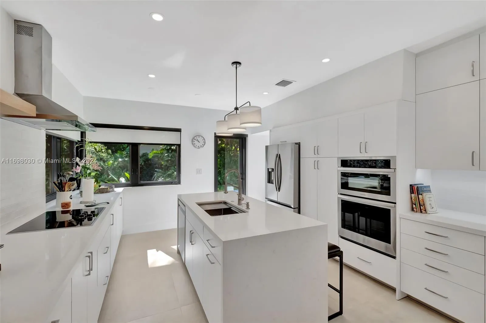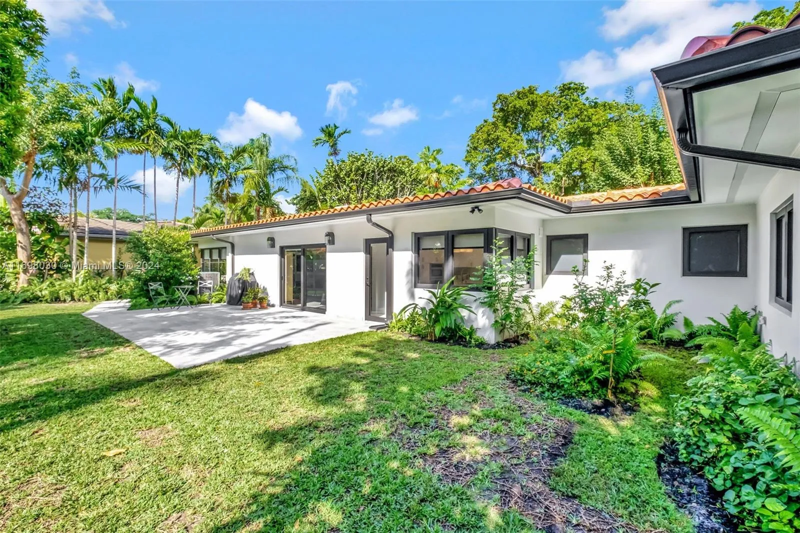 Completely renovated 3-bedroom, 3-bathroom home on a beautiful tree-lined block in Coral Gables, situated on a spacious 10,500 sqft double lot. This stunning property features a brand-new roof, soffit, fascia and gutters (2024), impact windows and doors (2024). All-new porcelain tile flooring throughout. The open-concept design includes a large integrated family room, dining area, and living room, perfect for modern living and entertaining. The chef’s kitchen boasts a custom-made cabinets, cooking island, quartz countertops, and all-new smart stainless steel appliances. Two bedrooms are en-suite, including a master suite with a backyard view and a large walk-in closet. A new Wifi irrigation system enhances the lush outdoor space. Move-in ready with modern upgrades and charming curb appeal!