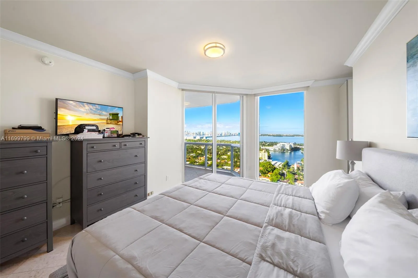 The large primary suite features an en-suite bathroom, a spacious walk-in closet, and direct access to a spacious terrace where you can enjoy breathtaking sunsets.