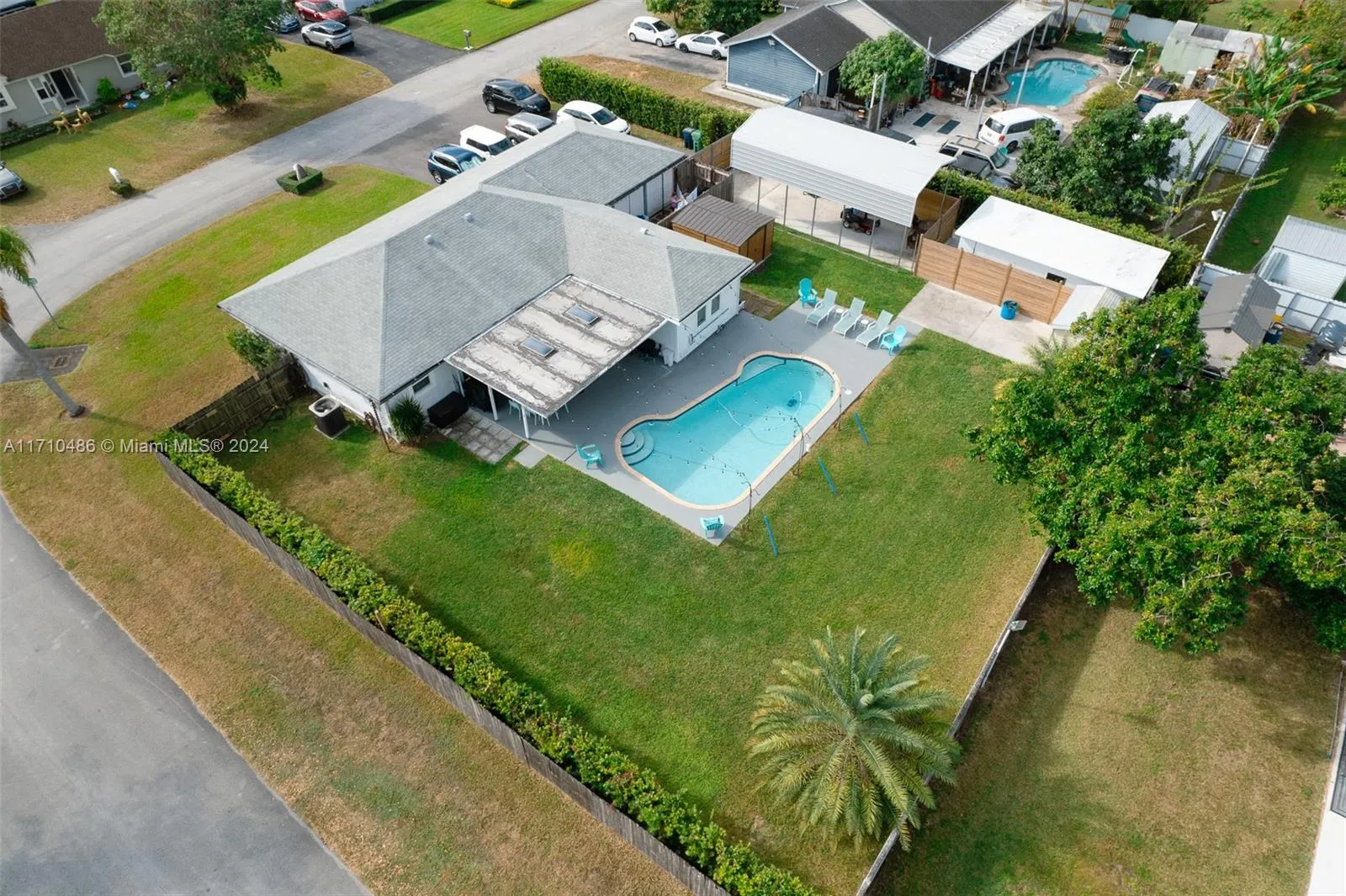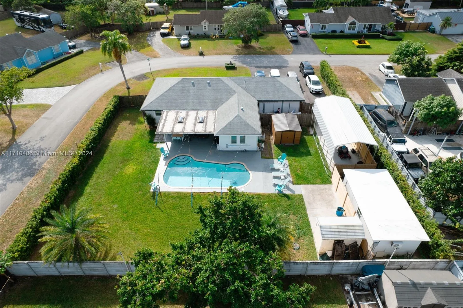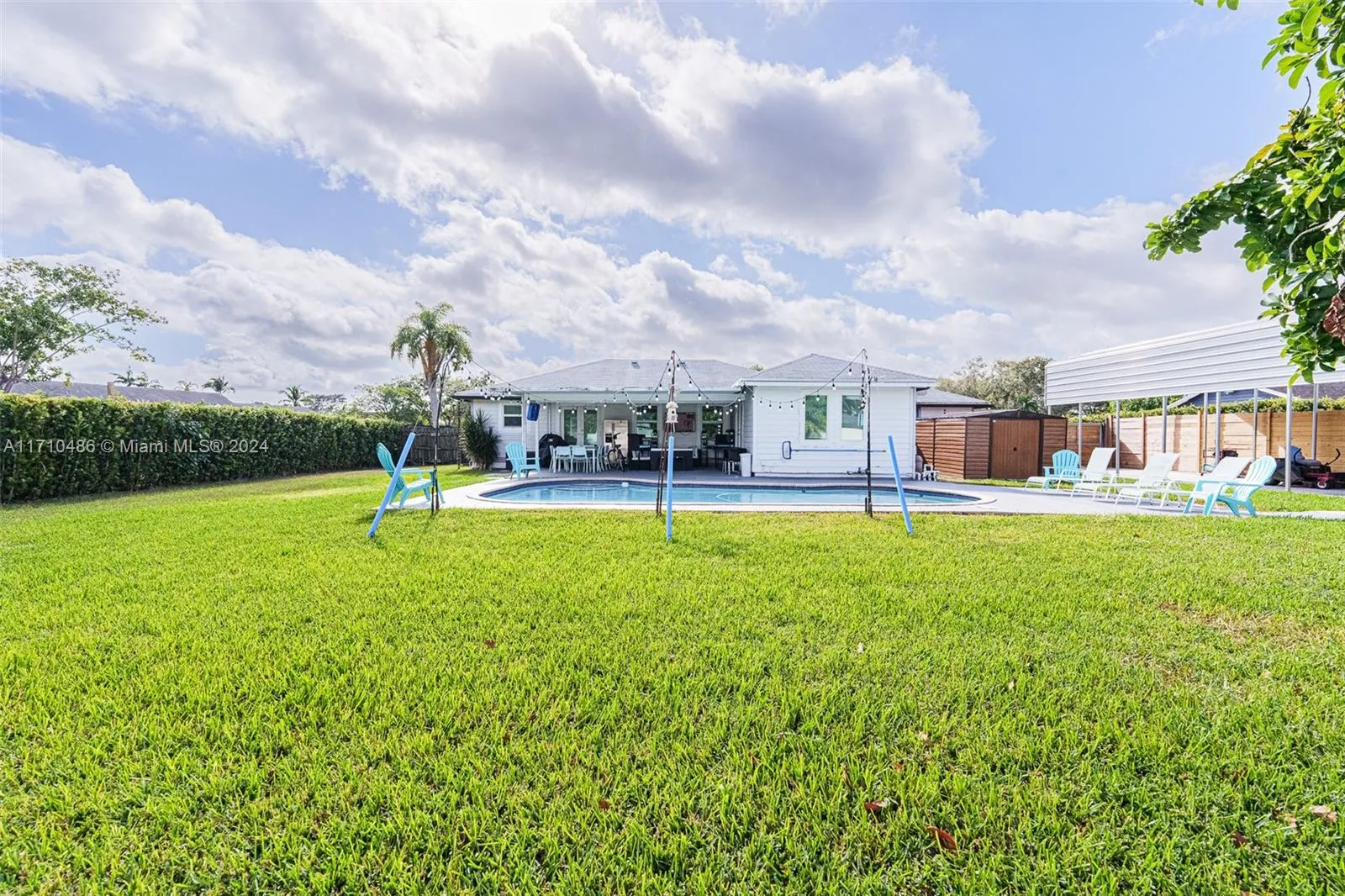 This stunning home boasts a fully remodeled interior, featuring a contemporary kitchen, luxurious bathrooms, and upgraded flooring throughout. The spacious kitchen is a chef’s dream, equipped with sleek countertops, state-of-the-art appliances, and a large island perfect for entertaining. Both bathrooms have been tastefully updated with elegant fixtures, new vanities, and modern tile work. Also gorgeous new flooring that flows seamlessly through the main living areas, adding warmth and style to every room. Step outside to your own private oasis! The backyard is a true highlight with a sparkling pool, ideal for relaxing or hosting gatherings. The property also includes a large covered shelter, perfect for storing your boat or RV, ensuring both convenience and protection from the elements.