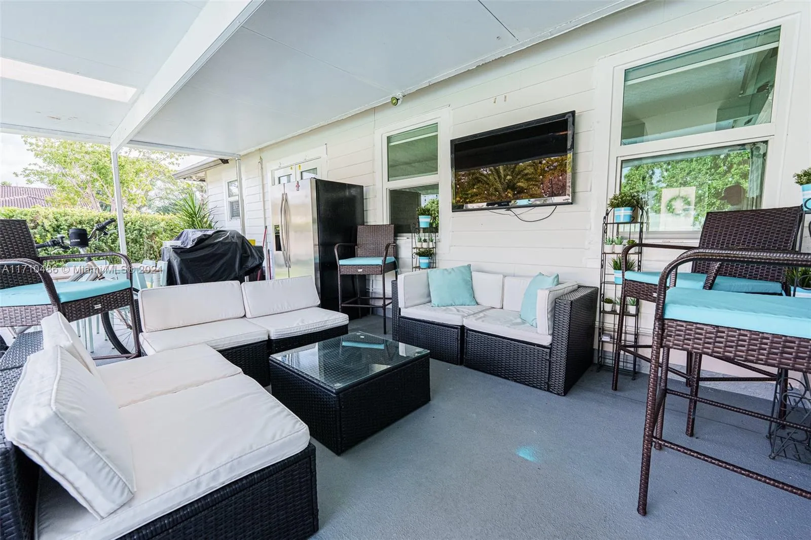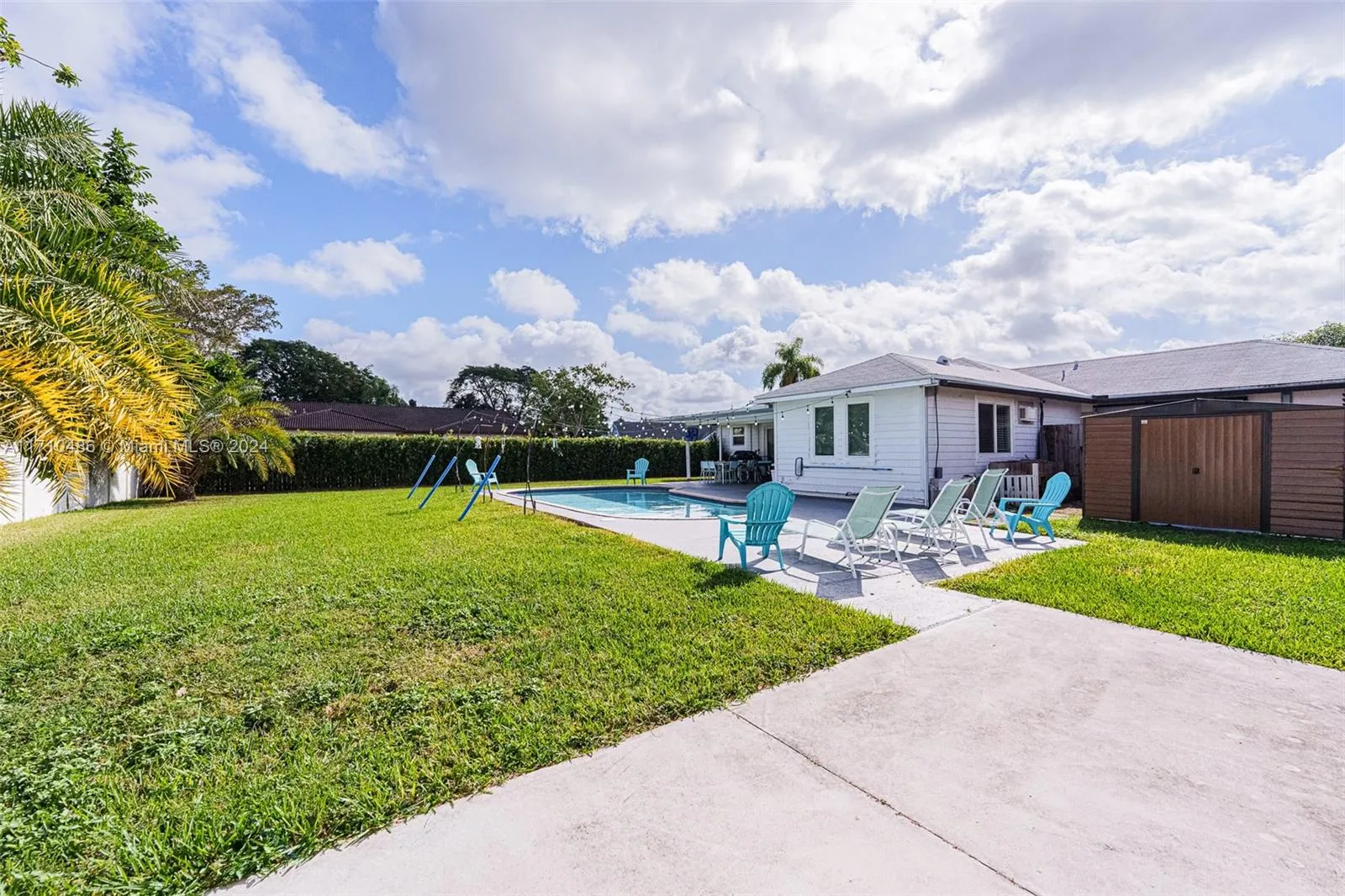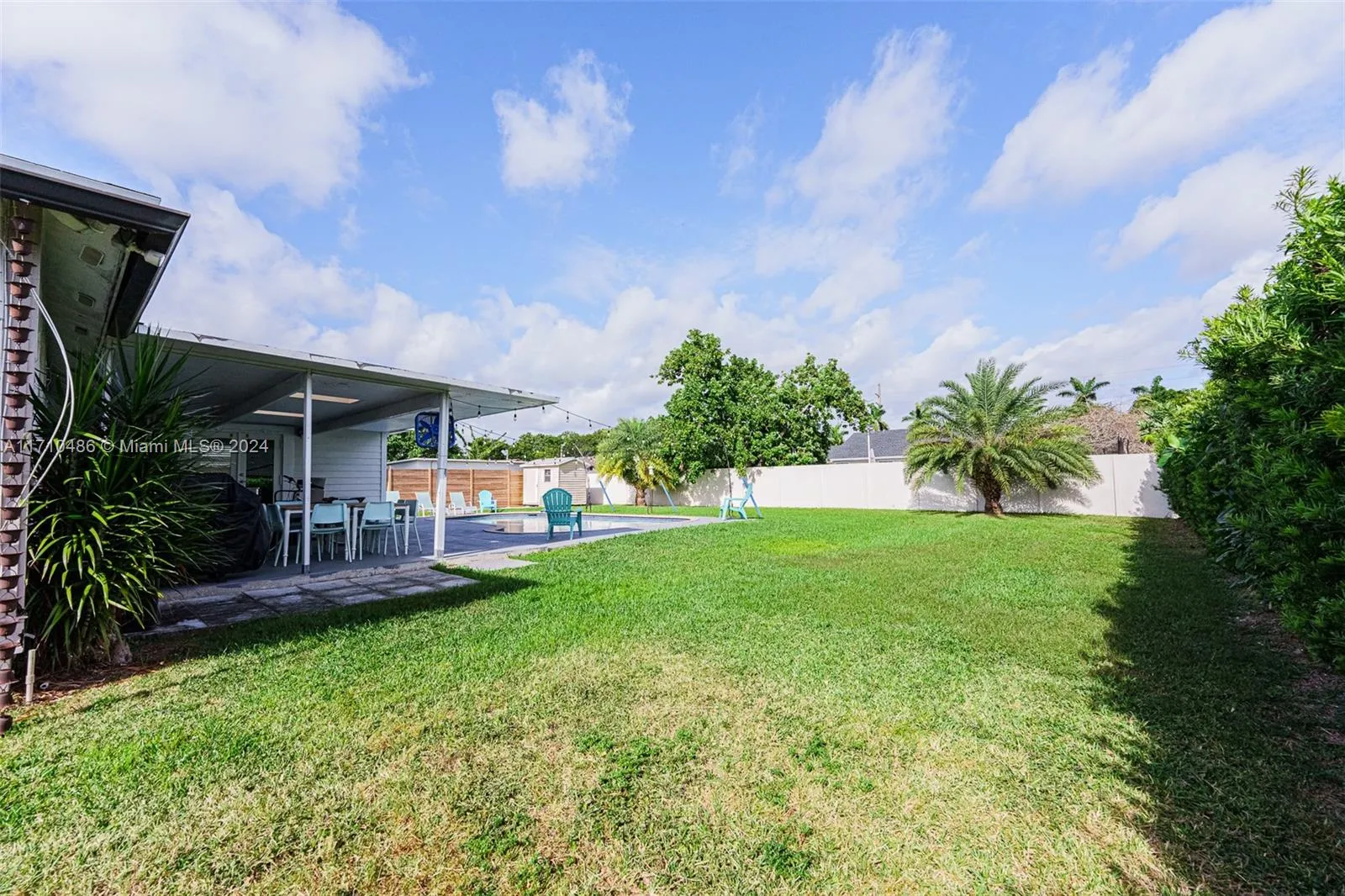 This stunning home boasts a fully remodeled interior, featuring a contemporary kitchen, luxurious bathrooms, and upgraded flooring throughout. The spacious kitchen is a chef’s dream, equipped with sleek countertops, state-of-the-art appliances, and a large island perfect for entertaining. Both bathrooms have been tastefully updated with elegant fixtures, new vanities, and modern tile work. Also gorgeous new flooring that flows seamlessly through the main living areas, adding warmth and style to every room. Step outside to your own private oasis! The backyard is a true highlight with a sparkling pool, ideal for relaxing or hosting gatherings. The property also includes a large covered shelter, perfect for storing your boat or RV, ensuring both convenience and protection from the elements.