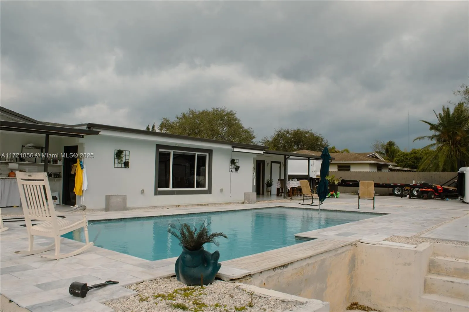 Discover this spacious home featuring five bedrooms, four bathrooms, a beautifully converted double garage, two covered terraces, and two remodeled kitchens with stainless steel appliances. Step outside to enjoy a brand-new pool, perfect for relaxing in a quiet, serene neighborhood. It has impact-resistant windows and doors. No association fees, just peace and privacy in this ideal location. Don’t miss out on your dream home! Contact us today for a tour.