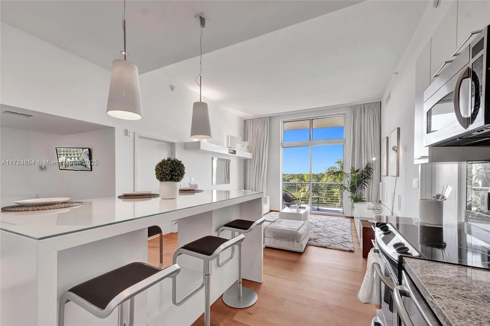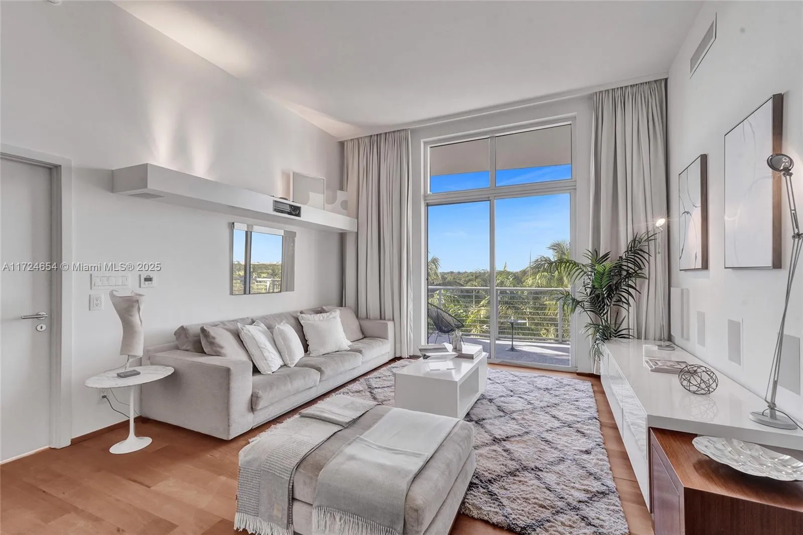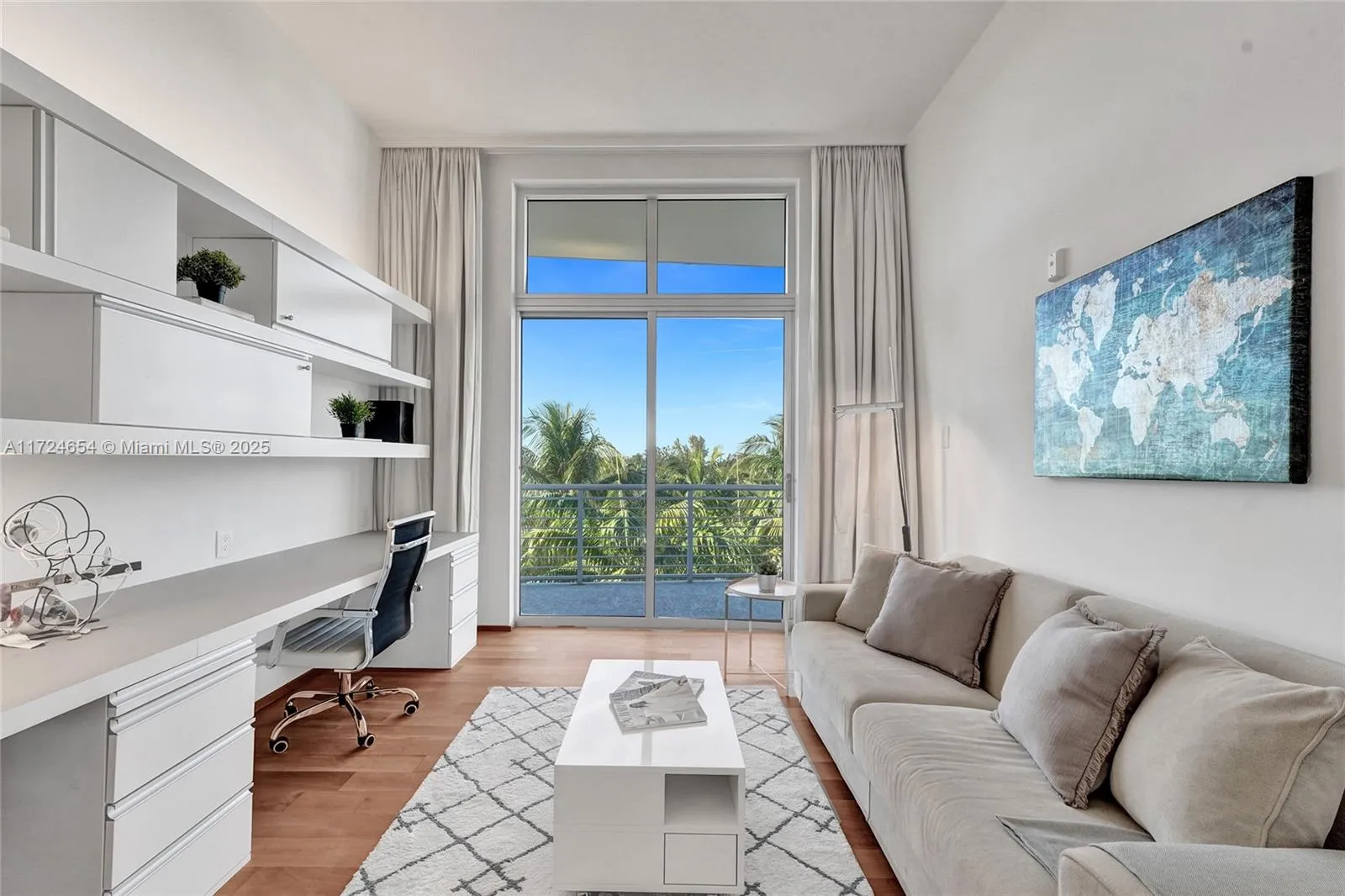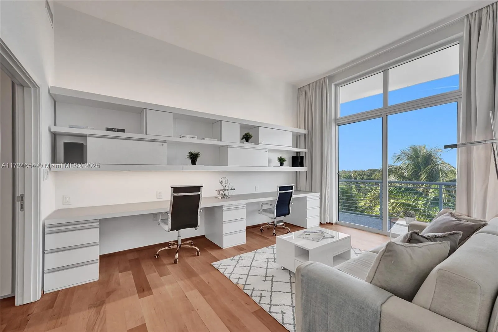 Experience Miami Beach luxury living in this one-of-a-kind 2-bedroom, 2.5-bathroom loft-style residence! Designed by Nora Lippuner and crafted by NUSSLI GROUP in Switzerland, it features 11.5-foot ceilings, a split floor plan with en-suite bathrooms, an open kitchen with designer finishes, a relaxing reading nook and new state-of-the- art appliances. Enjoy stunning sunsets and golf course views from every room, each with balcony access and window treatments. The home is equipped with premium upgrades, including a 4K audio system, soundproofed walls, wine coolers, custom drapes, matte wood floors, and a projection theater system. Two corner parking spaces with