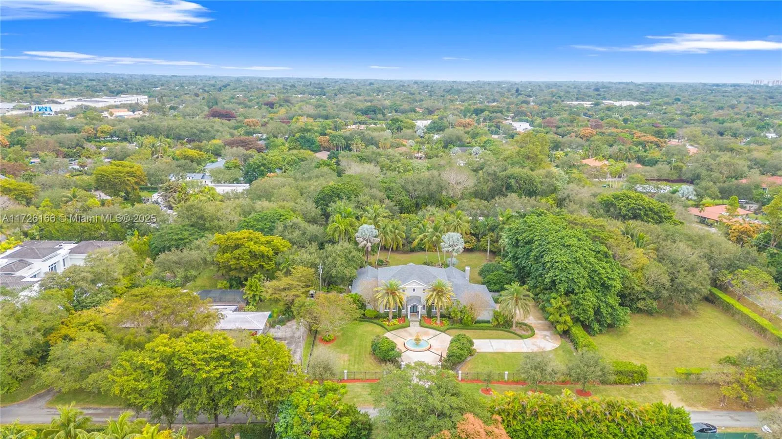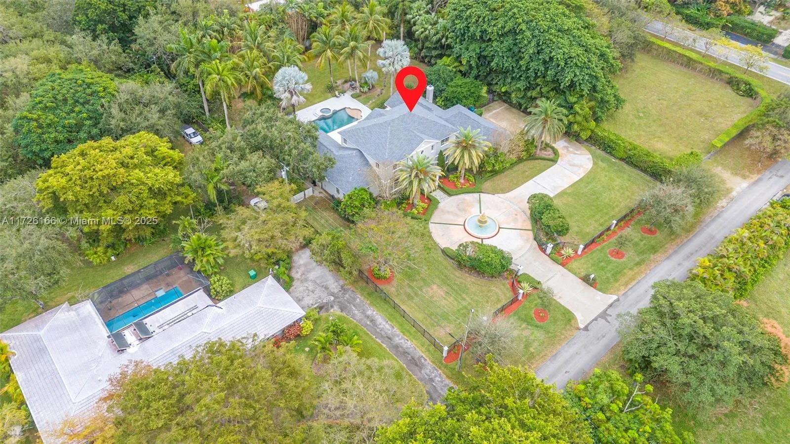 Spectacular Gated One acre Estate on a Private Street in prestigious Pinecrest Nestled on 43,229 sq. ft. This stunning home offers unparalleled luxury & privacy. Expansive floor plan includes 5 bedrooms + den/office + 4.5 baths. A vast primary suite on the main level provides comfort & convenience + a jr suite upstairs with 3 add’l over sized bedrooms. The home boasts a grand foyer entry, formal living rm + an enormous family room with fireplace, + private dining rm for glamorous gatherings. The outdoor space is a true sanctuary, featuring a resort-style pool + Jacuzzi surrounded by lush landscaping, creating a serene oasis perfect for relaxation & entertaining. Side entry 3 car garage, whole house generator, EV charger, impact windows & doors, & 4 year old roof. A MUST SEE !