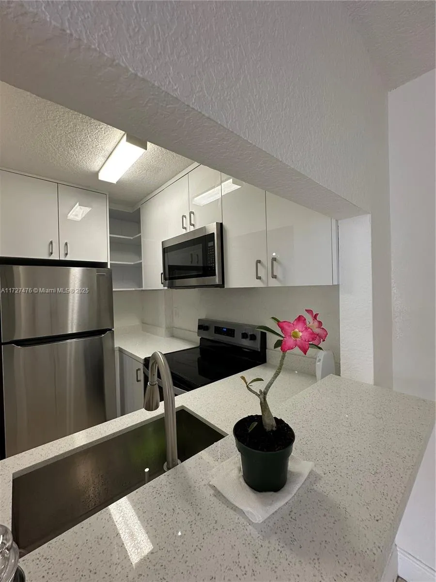This centrally located unit in the Fontainebleau area features two bedrooms and two updated bathrooms, along with a fully renovated kitchen across five floors. Residents can enjoy various amenities, including a pool, clubhouse, and tennis court. The unit also comes with a washer and dryer, as well as a balcony that offers a view of the pool.