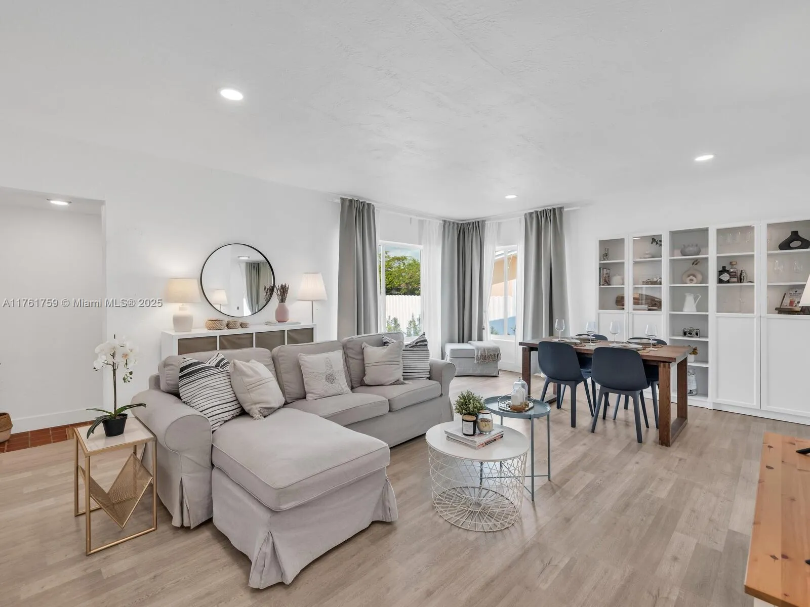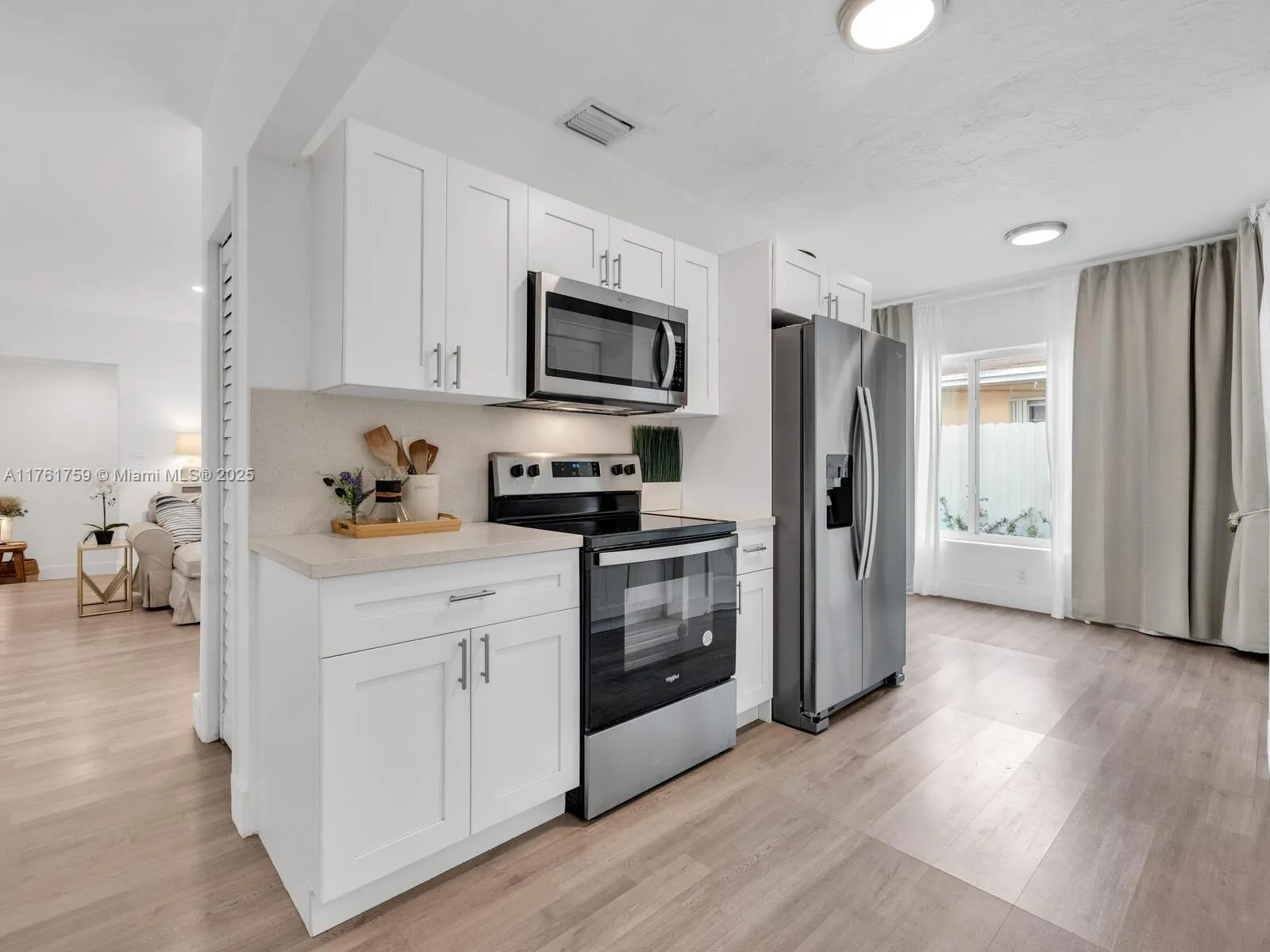 Welcome to The Sunliner House! It’s always sunny in this meticulous, light and bright updated three-bed, two-bath mid-century modern home. Enter into open-flow living and dining, with a new quartz countertop designer kitchen. Sweet dreams await in three comfortable bedrooms, including a rear ensuite with its own private entrance. Enjoy the sunny backyard with covered entertainment pergola, new aluminum privacy fence, and new irrigation system to nourish the orange, mango and lemon trees! Great features: brilliant light throughout; impact windows-doors; gorgeous, planked flooring; two updated designer baths with walk-in showers; plus, plenty of parking with a sleek modern carport and a one-car garage, all in a convenient non-flood zone location. The sun is always shining at The Sunliner!