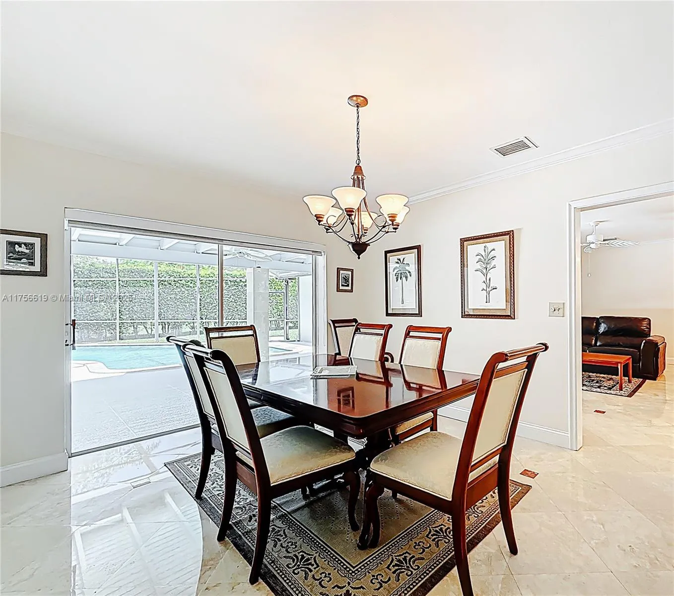 This charming family home, in the quiet Old Cutler South neighborhood, is just off Old Cutler Road, west of the Deering Estate in Palmetto Bay. This split-plan 4-bedroom, 3-bath pool home sits on a builder’s half-acre with 11’ elevation, with a 2-car garage and additional parking for an RV or boat. The kitchen features ceiling-high white cabinets, SS appliances, granite countertops, recessed lighting and a walk-in pantry. Travertine floors in the kitchen, family room and dining room, and wood laminate floors in the bedrooms and living room. Hurricane impact windows are accented by white interior plantation shutters. New tile roof in 2018. A screened patio surrounds the pool with a private backyard. Conveniently located near A+ public and private schools and daycares in Miami.