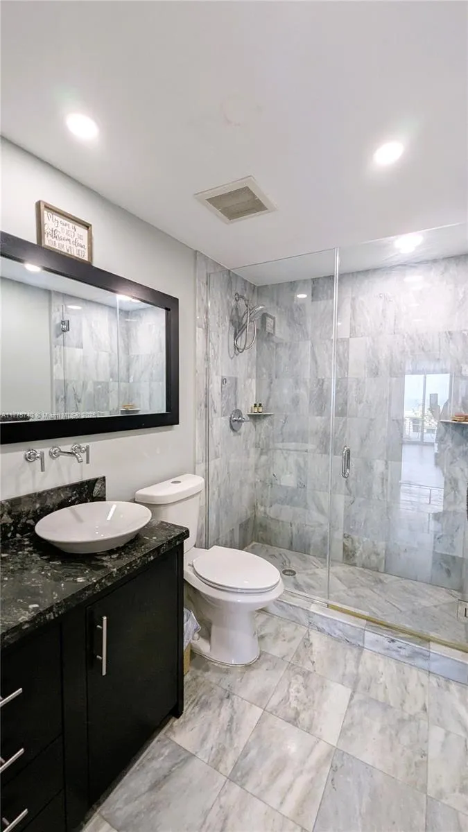 The Real Thing!! A true, rooftop penthouse with an amazing, huge rooftop terrace w/direct access thru sliding impact glass doors from the spacious open living area & all 3 bedrooms! It’s like a backyard in the sky with an amazing direct ocean view!! Fully remodeled with coral stone flooring, recessed lighting, gorgeous chandelier & hi-end light fixtures. Spectacular kitchen with a built-in granite table that seats 6, custom wood cabinetry, granite counters, stainless steel appliances, stone & stainless backsplash, wolf cooktop & oven, & a commercial style vented exhaust. Also featured is a spacious master bedroom suite with a fully marbled & tiled absolutely lavish master bath with large walk-in shower with steam, jacuzzi & two separate vanities and more. Furniture negotiable.