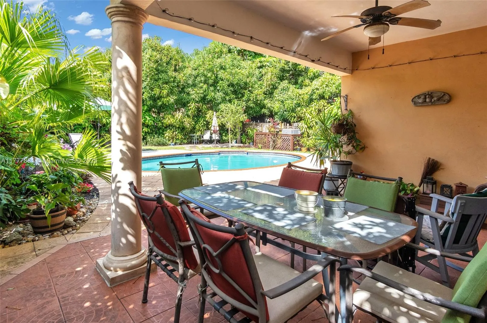 Custom-built home (2003) with stunning gardens & lush landscaping, creating a private oasis for you to enjoy. Pull up your spacious driveway and be greeted by beautiful curb appeal in an established area! Features include: 3 spacious bedrooms with walk-in closets, Primary bedroom en-suite with Jacuzzi tub & separate shower, impeccable maintenance & beautiful wood-look tile in a classic herringbone pattern. The kitchen with stainless steel appliances, wood cabinets, a snack bar, and an ample pantry. Covered patio & outdoor sitting area perfect for relaxation. Located near Biscayne Blvd, with easy access to Aventura, Oleta State Park, Haulover Marina, I-95 and The Golden Beaches. A perfect blend of location, luxury and tranquility!