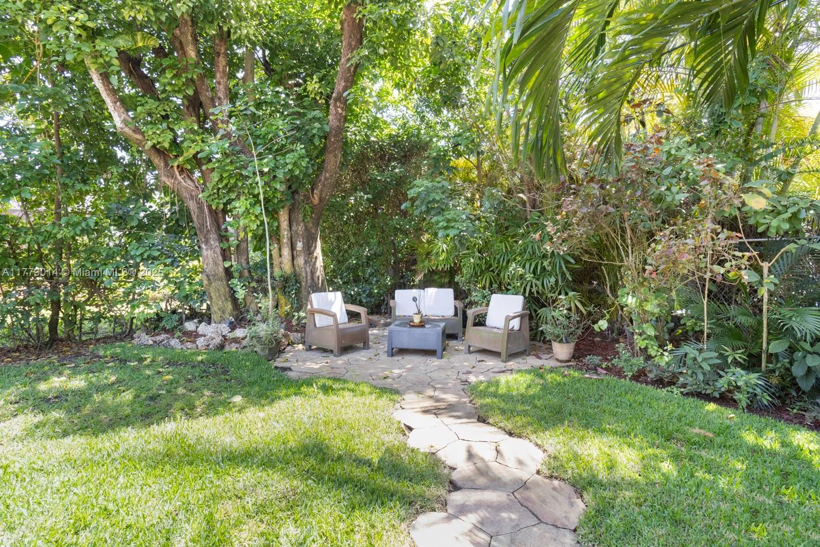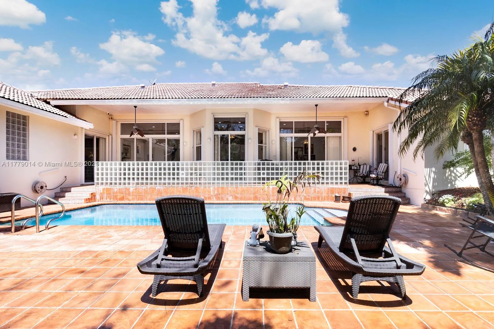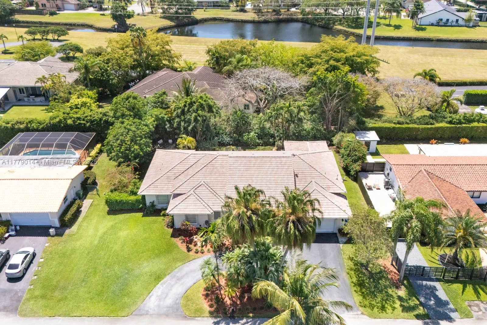 Fantastic and rare opportunity to own a 1994-built large single family home on a hidden quiet street in North Palmetto Bay with all Pinecrest schools! Soaring ceilings, great layout and split floor plan, huge open kitchen-family room, indoor laundry room, tons of light, and more! Nicely built-up/high house with great street presence. Gorgeous lush pool-patio area with big cantilevered overhang.