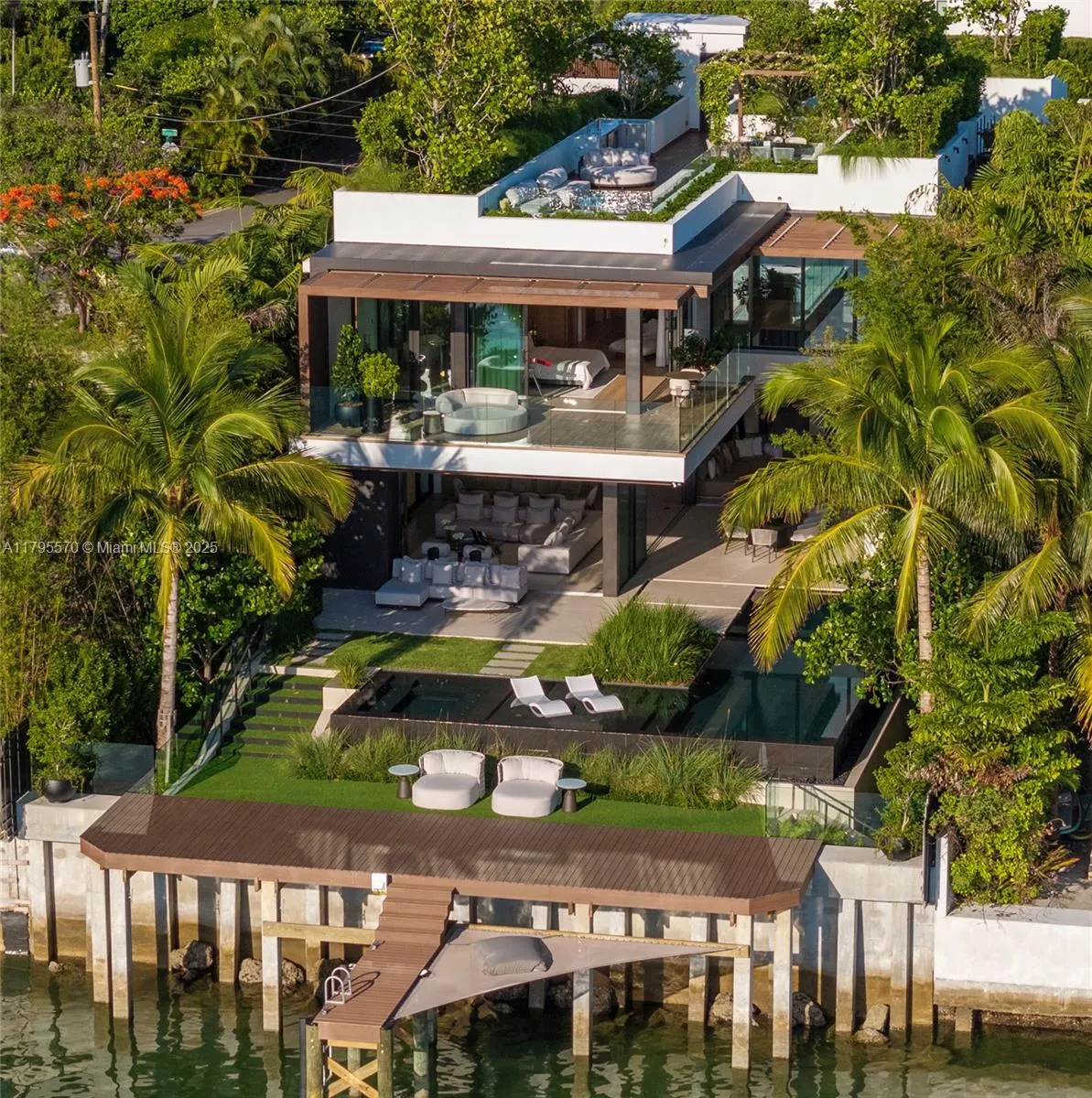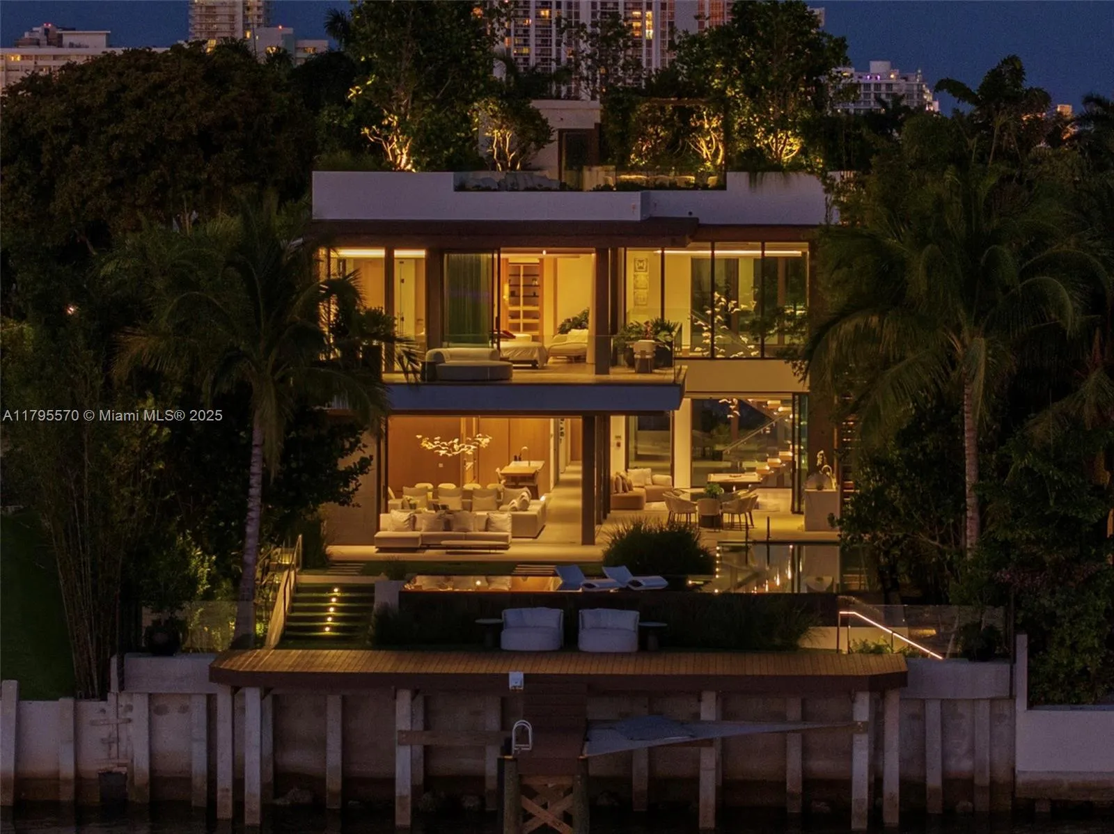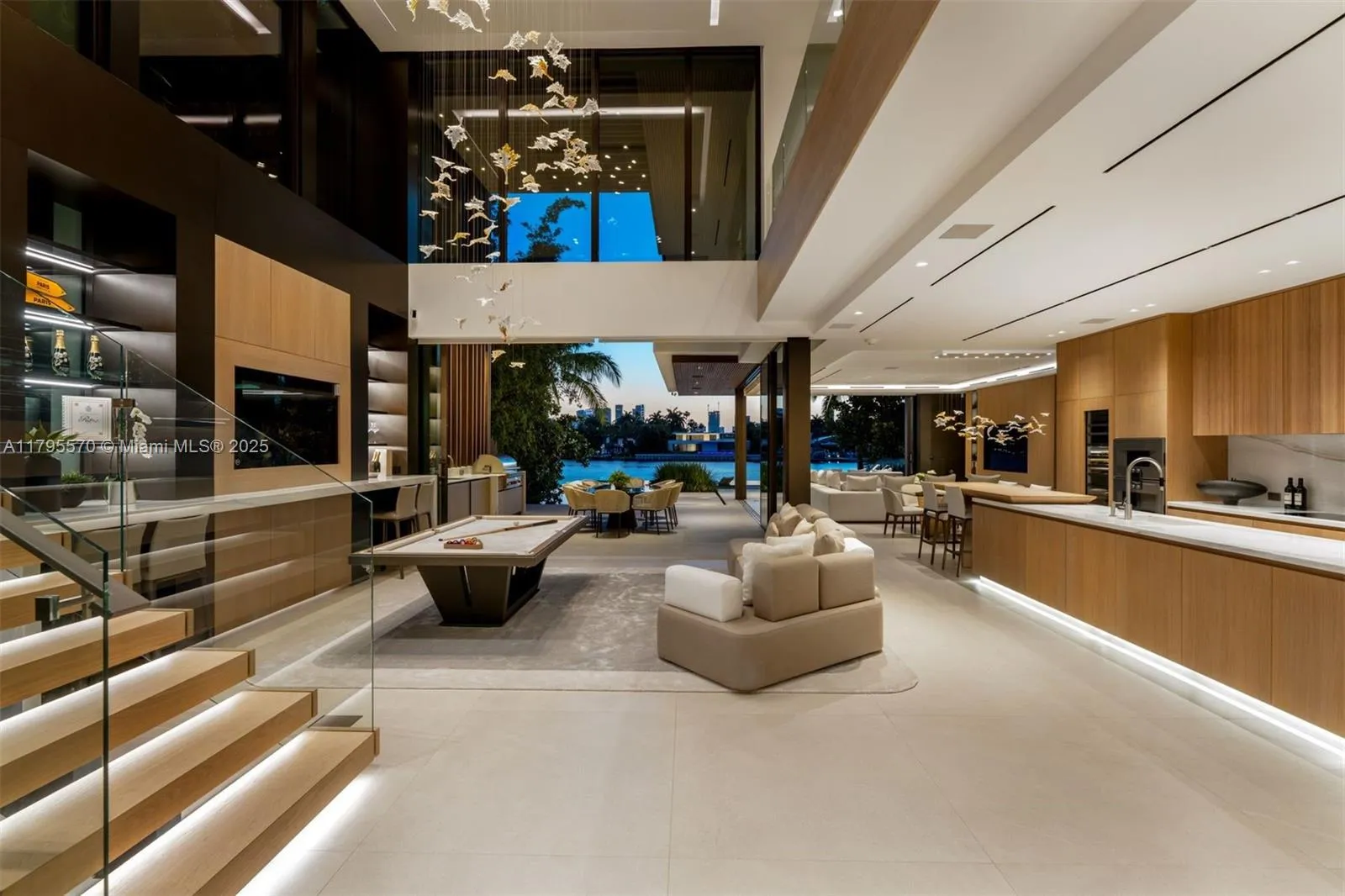AWARD-WINNING—Maison Rive Gauche, crowned Best Luxury Architecture in Florida for 2025, is a bold waterfront masterpiece by Strang Design, capturing the essence of refined living on the Venetian Islands. Thoughtfully designed with sophistication and attention to detail. A tranquil water garden arrival sets the tone for brilliance. A 22’grand salon wrapped in oak-paneled walls features a bespoke bar, 420-gallon aquarium, and sunset lounge. The Gaggenau kitchen impresses with sculptural oak island and sleek cabinetry. The 1,400 SF primary suite offers dual spa baths, 2 walk-ins, and skyline terrace. 4 ensuite bedrooms, theater, office, elevator, and a panoramic rooftop, designed for comfort and ease, with stunning sunset views, perfect for entertaining. A/C garage, seawall, and 2 boats dock.