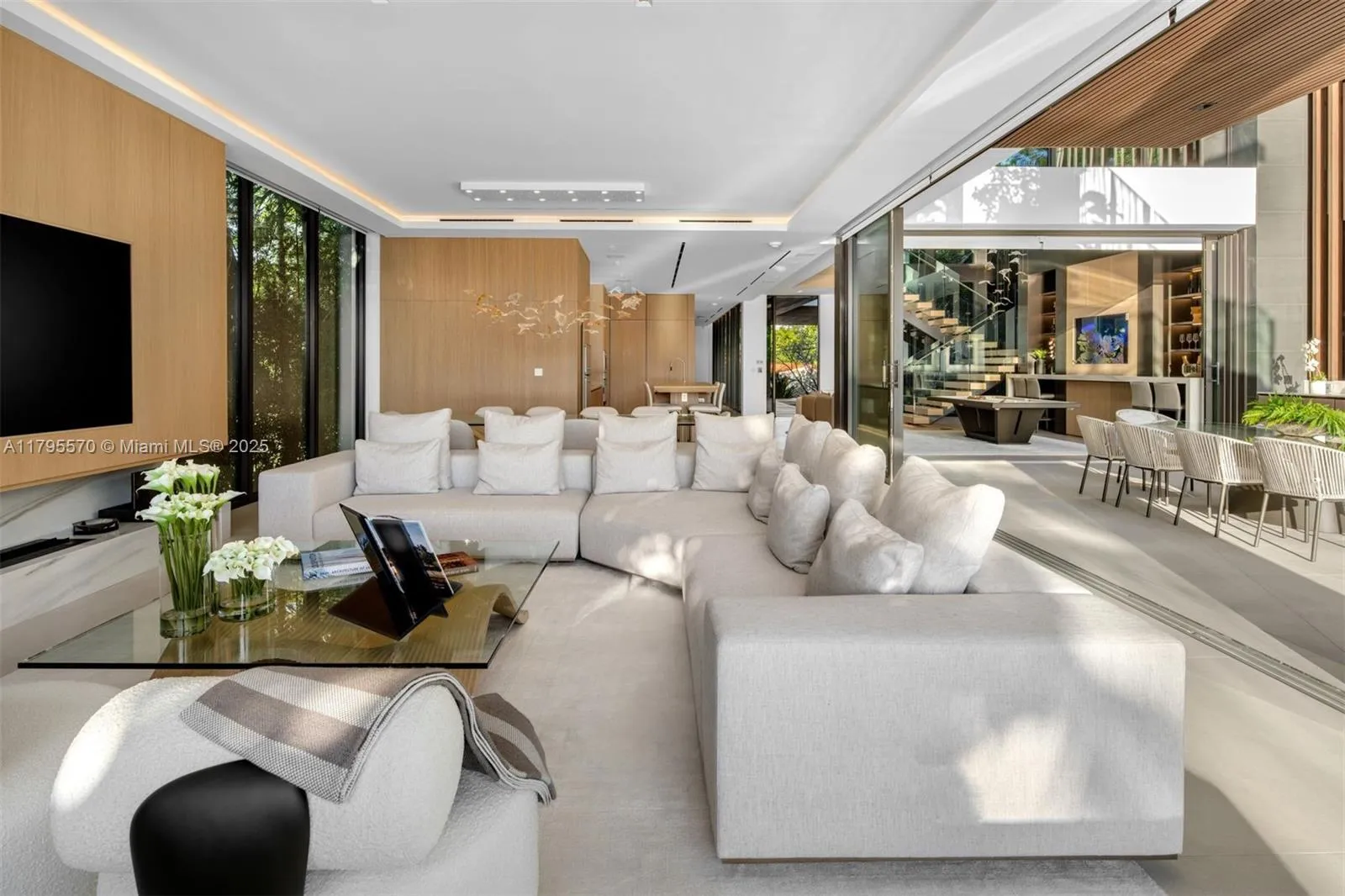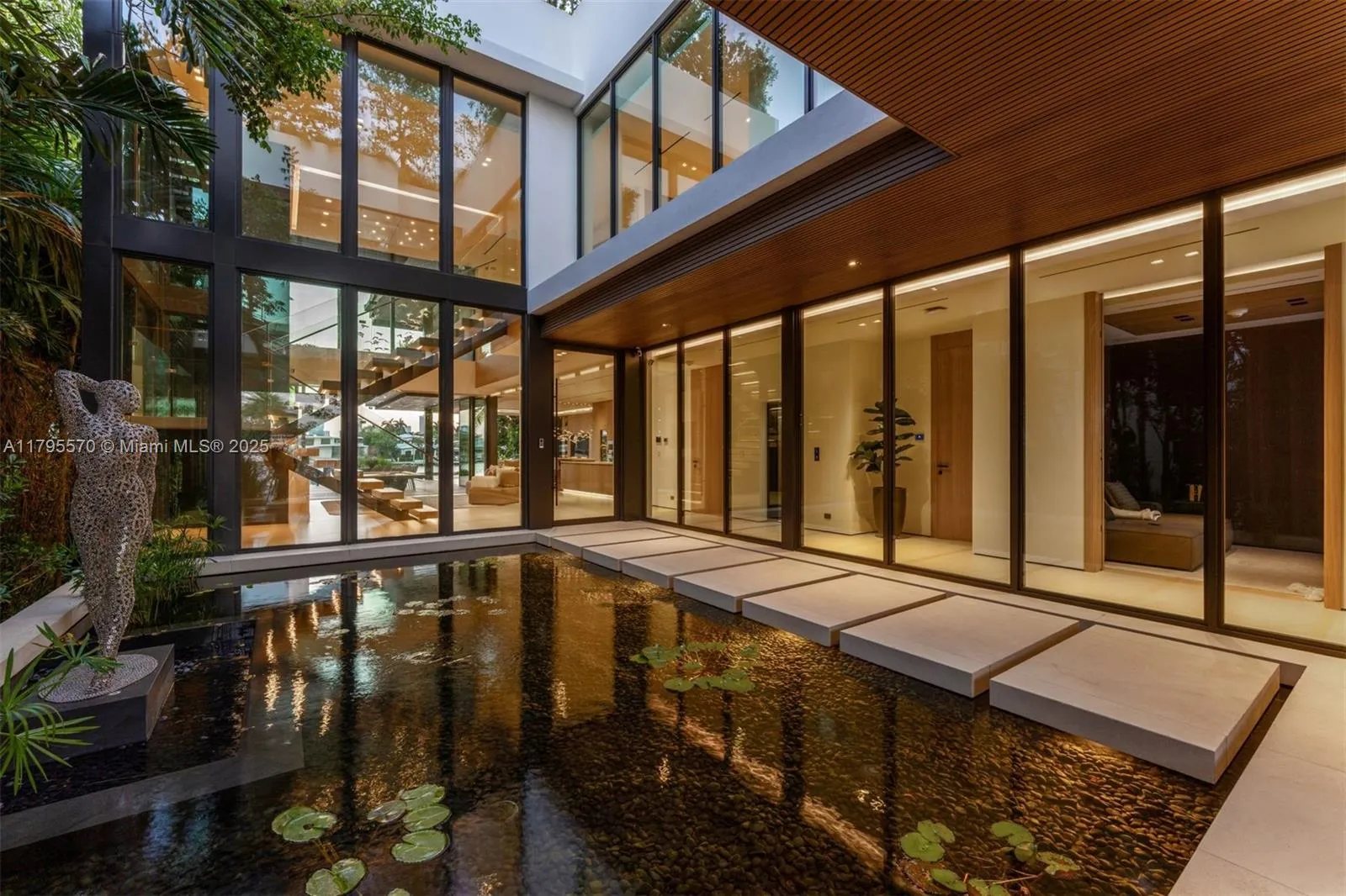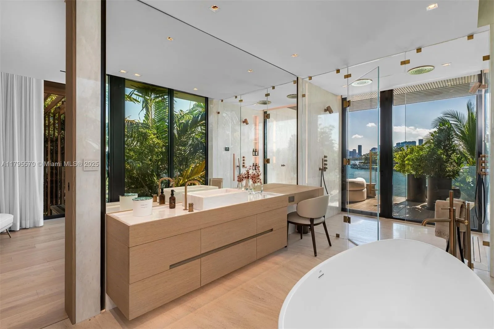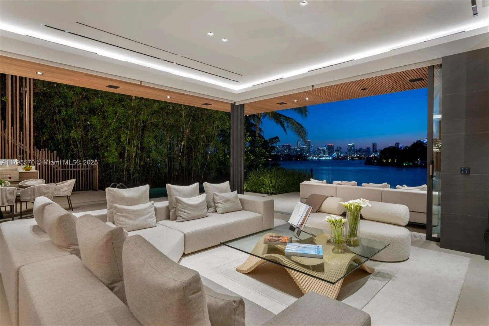 AWARD-WINNING—Maison Rive Gauche, crowned Best Luxury Architecture in Florida for 2025, is a bold waterfront masterpiece by Strang Design, capturing the essence of refined living on the Venetian Islands. Thoughtfully designed with sophistication and attention to detail. A tranquil water garden arrival sets the tone for brilliance. A 22’grand salon wrapped in oak-paneled walls features a bespoke bar, 420-gallon aquarium, and sunset lounge. The Gaggenau kitchen impresses with sculptural oak island and sleek cabinetry. The 1,400 SF primary suite offers dual spa baths, 2 walk-ins, and skyline terrace. 4 ensuite bedrooms, theater, office, elevator, and a panoramic rooftop, designed for comfort and ease, with stunning sunset views, perfect for entertaining. A/C garage, seawall, and 2 boats dock.