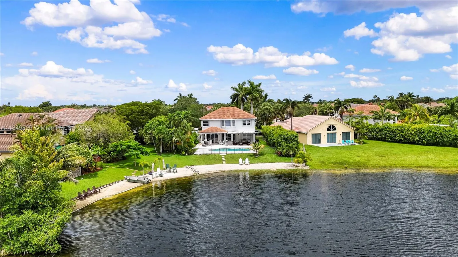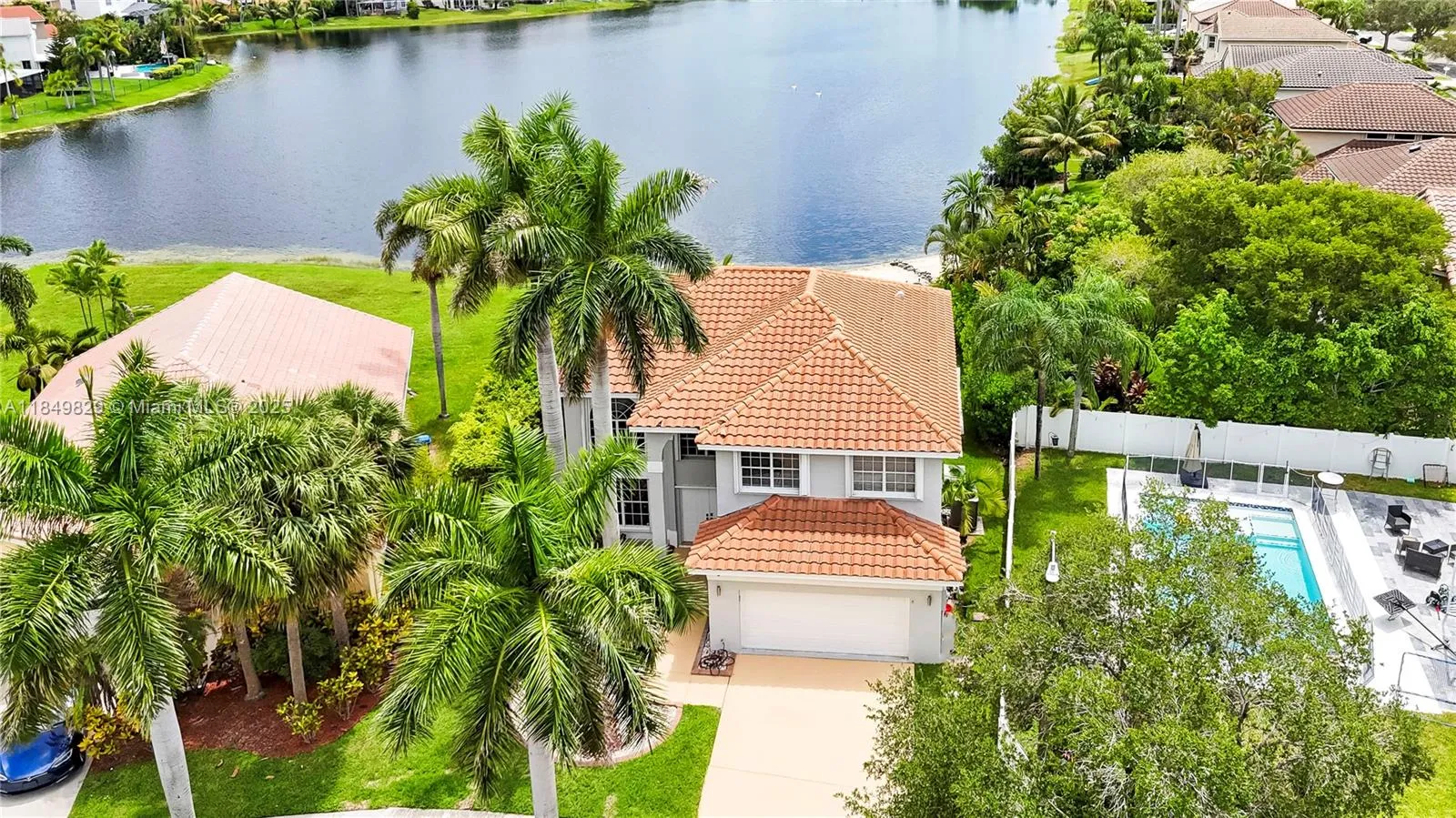 Breathtaking lake views and resort-style living await in this stunning 4-bedroom, 2.5-bath two-story home in highly sought-after West Pembroke Pines. Located on one of the most desirable lots on the lake, this property offers panoramic water views, a spacious patio with elegant pavers, a private beach, and a pool overlooking the lake—perfect for relaxing or entertaining. Enjoy the outdoor kitchen/bar with quartz countertops under a covered area, plus a pergola for shaded seating. The home features a new roof and A/C. The primary suite has lake views, a walk-in shower, soaking tub, new vanity, and custom walk-in closet. A rare opportunity to own a lakefront home with premium views, upgrades, and outdoor living.
