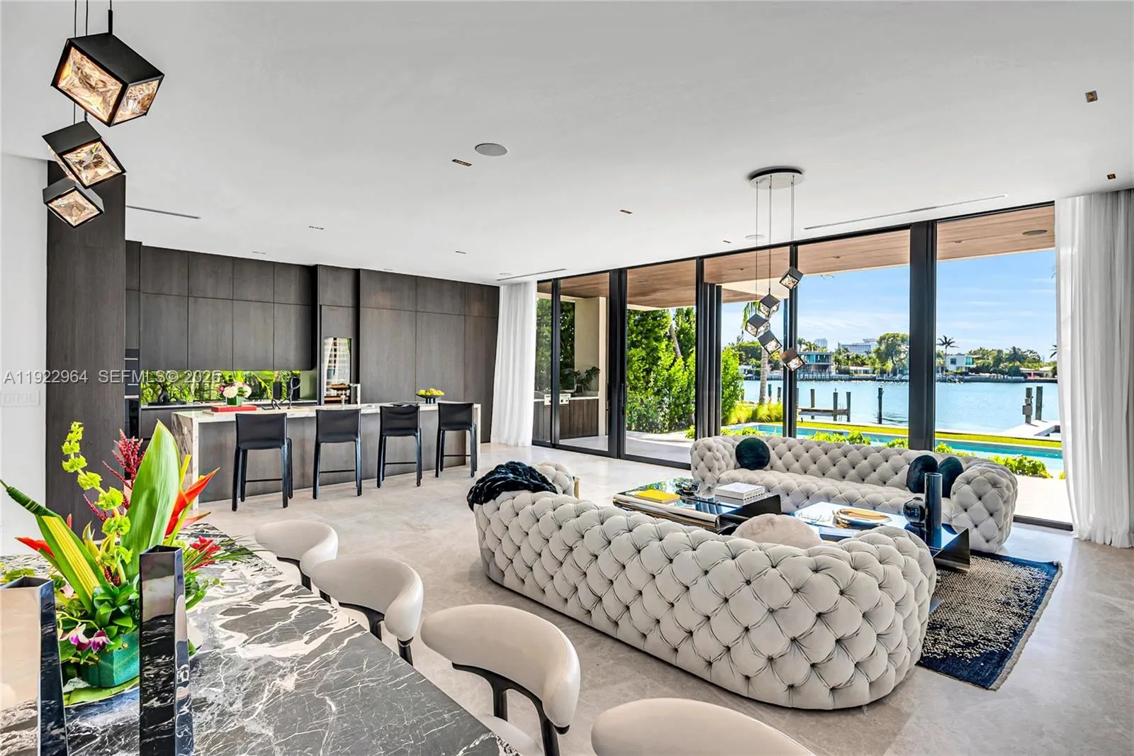 Spanning nearly 4,000 SQFT under A/C, the home features 4 spacious bedrooms and 4.5 bathrooms, sleek modern architecture, and meticulous attention to detail throughout. Premium finishes, expansive indoor-outdoor living areas, and a private boat dock elevate the waterfront lifestyle.